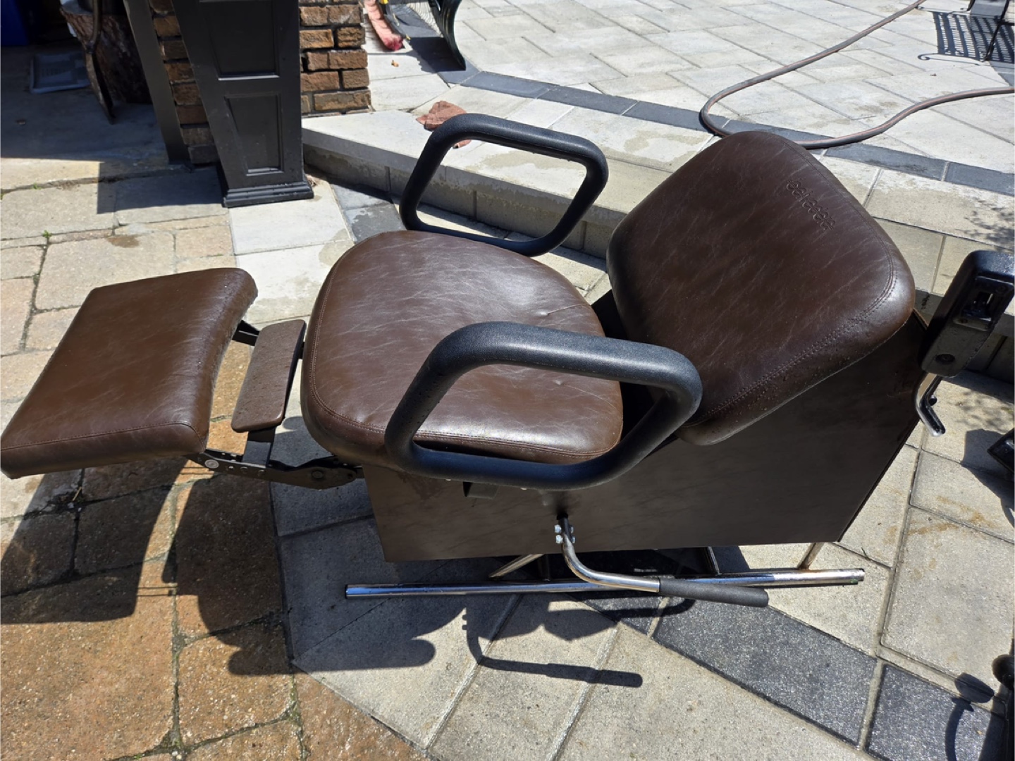 50% OFF- Brown leather shampoo chair. Hydraulic lift. Includes footrest. Come with chair and two sinks. Was purchased for $1600, is about 5 years old.