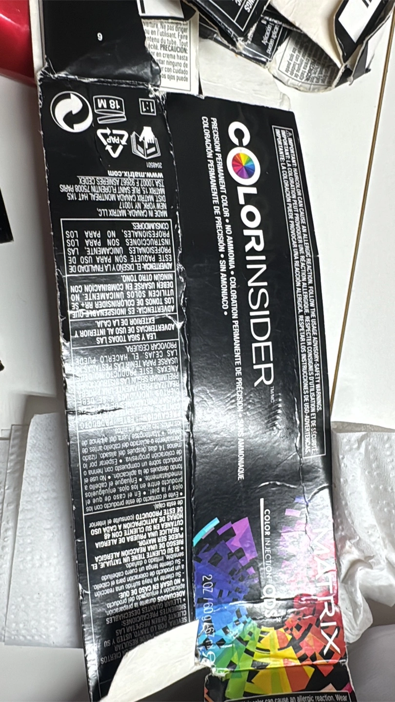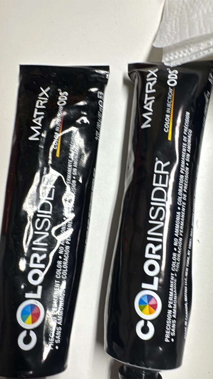 Two tubes of Matrix Colorinsider permanent hair colour in shade 0D5. Precision permanent coloration. No ammonia.