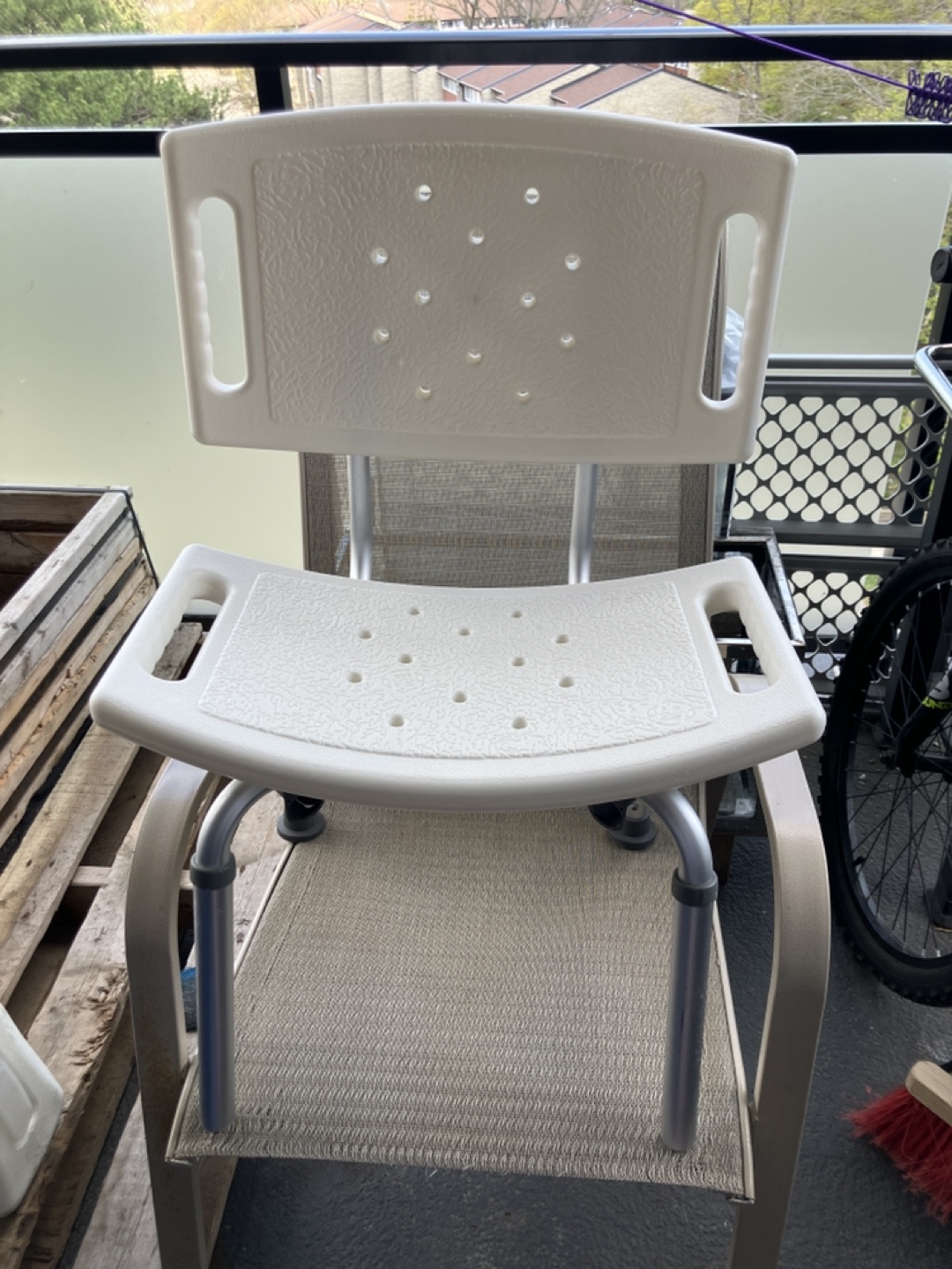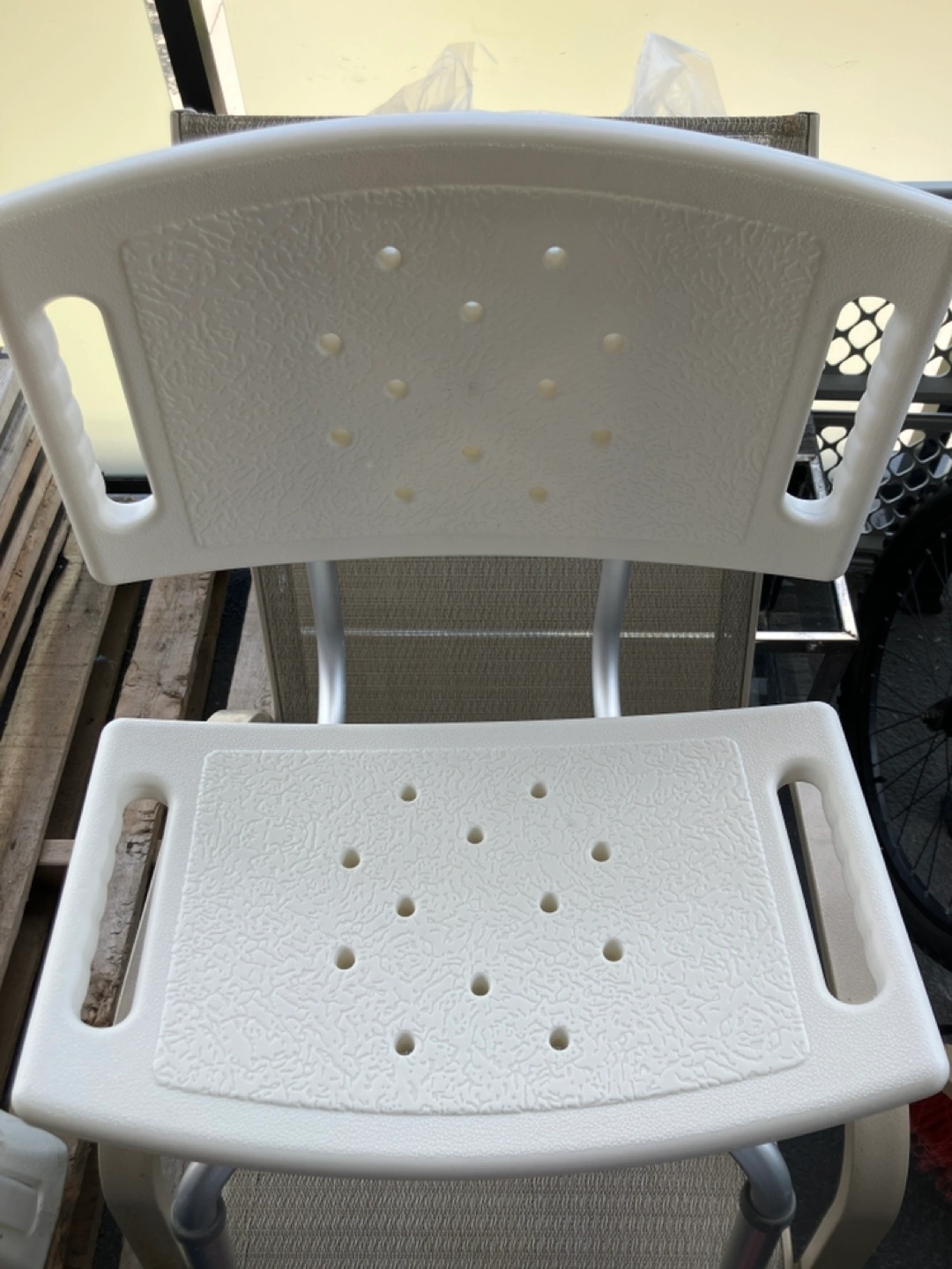 Shower Chair with Aluminum Legs- 2 back grips, missing front 2.