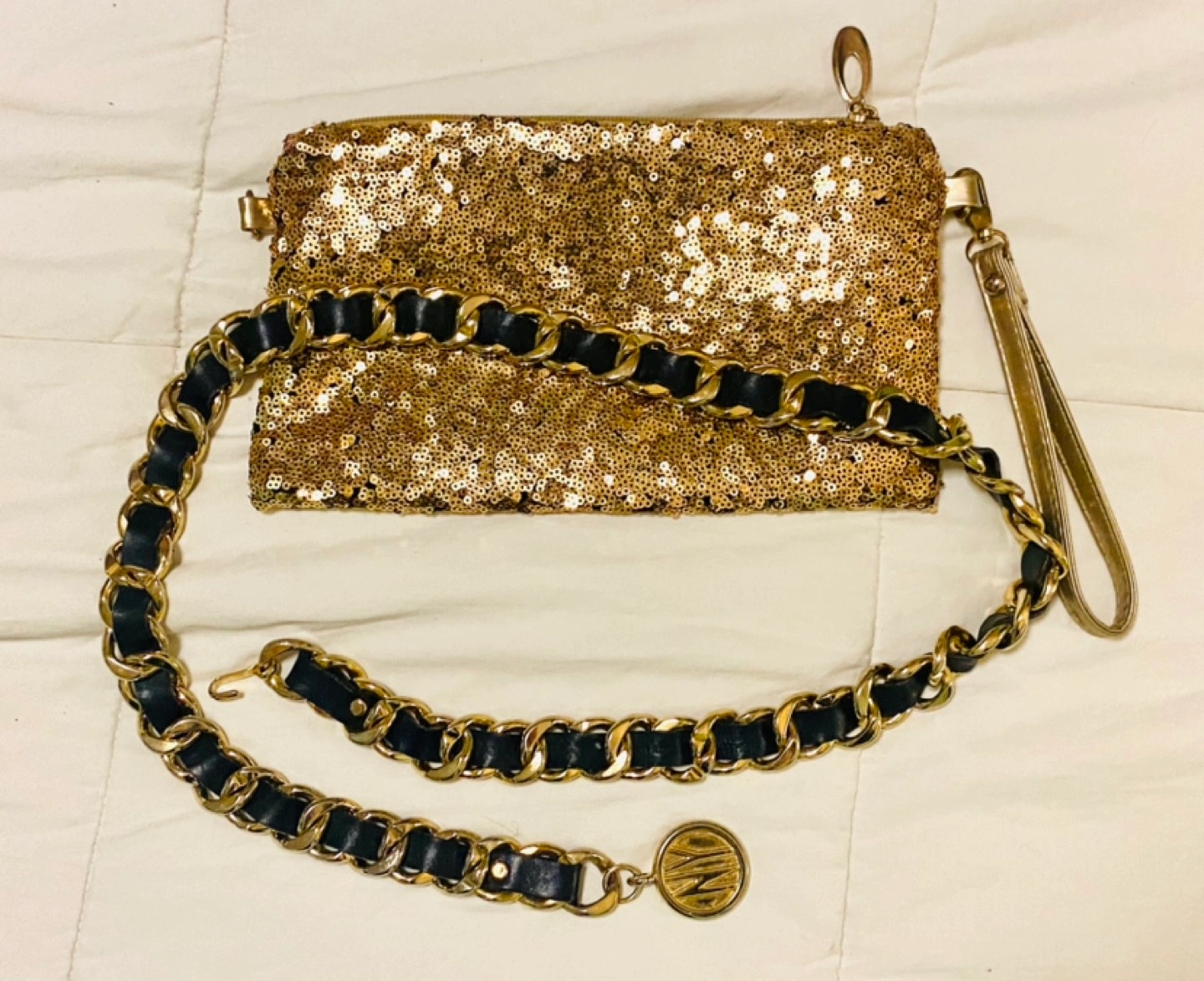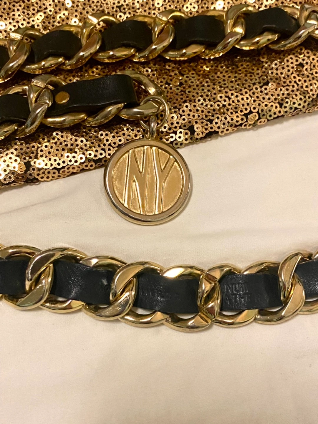 I am selling my gold sequence and gold and black leather belt !