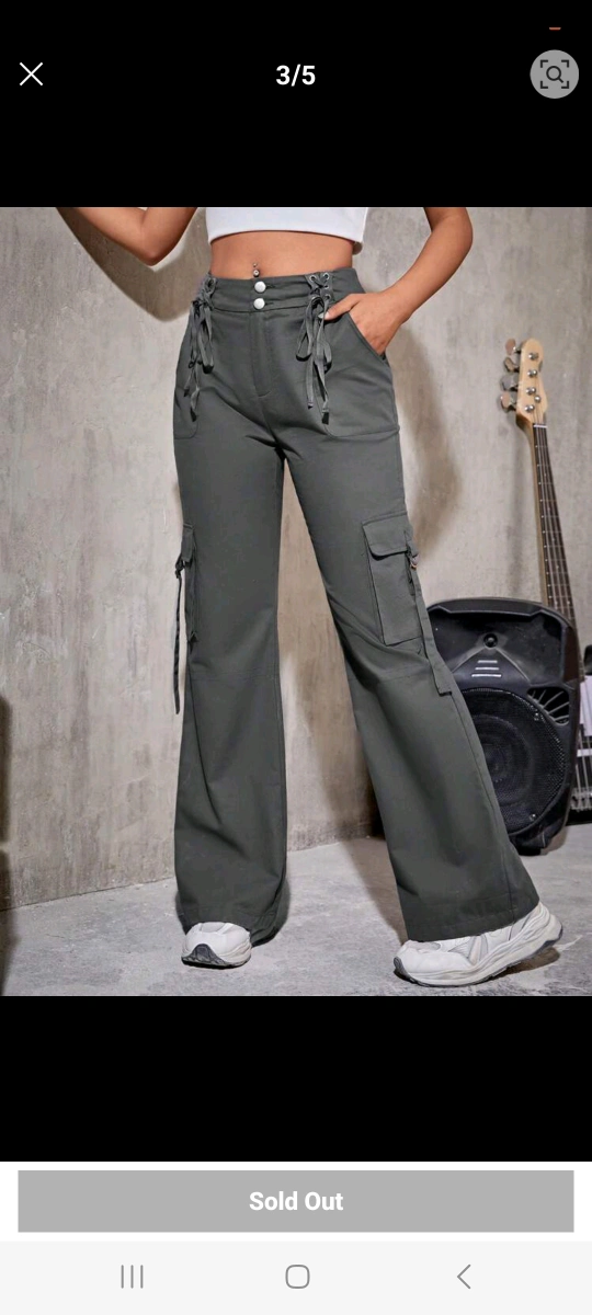 New Olive green cargo pants. never used. still tagged. Features flap pockets and lace-up detailing. Wide-leg style.size -L