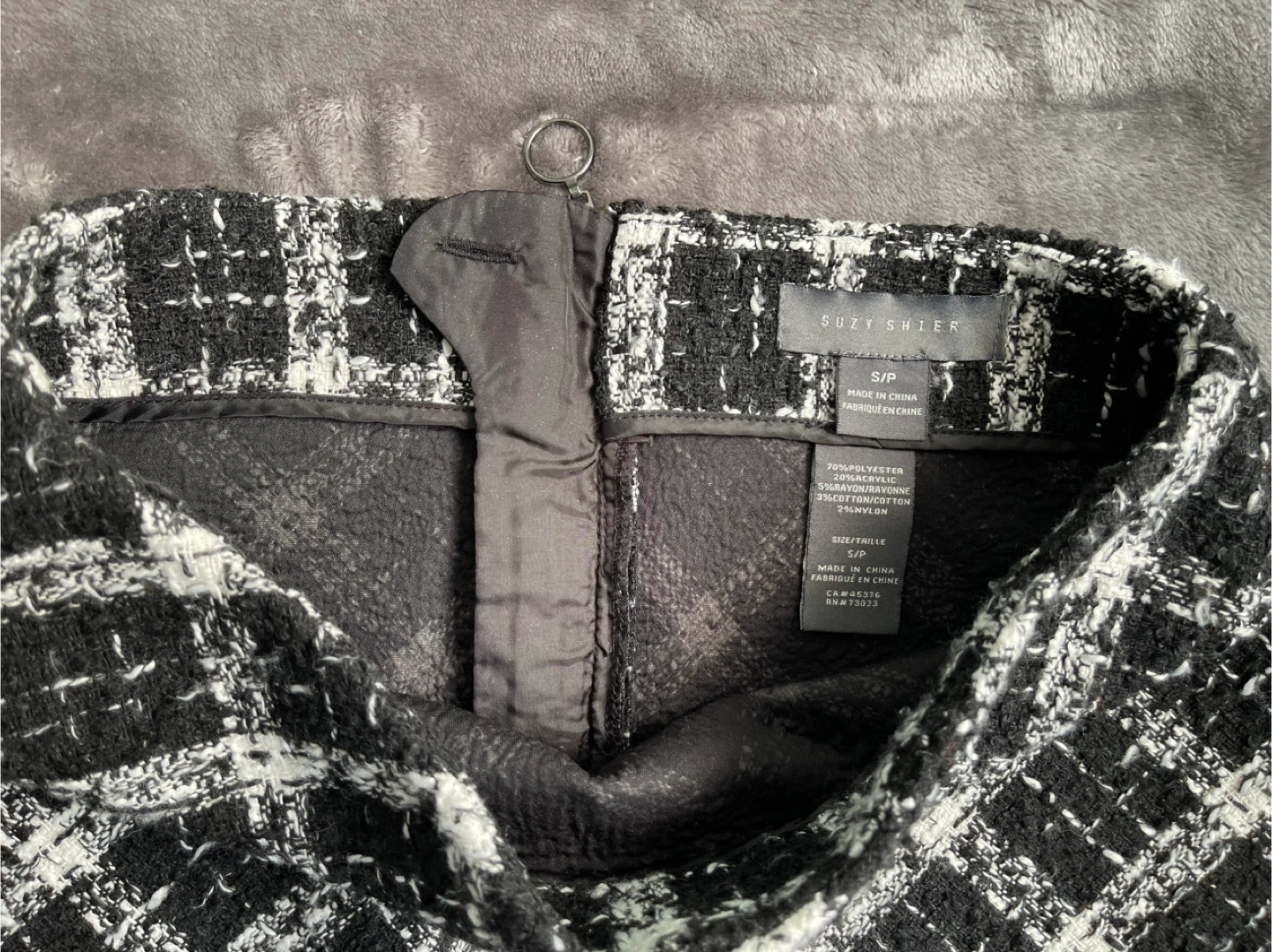 Suzy Shier Black and White Tweed Mini Skirt (Small)