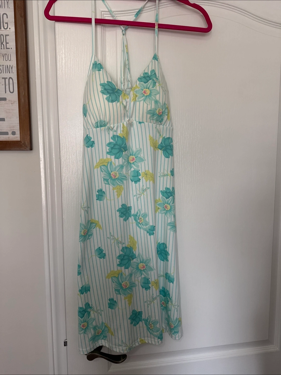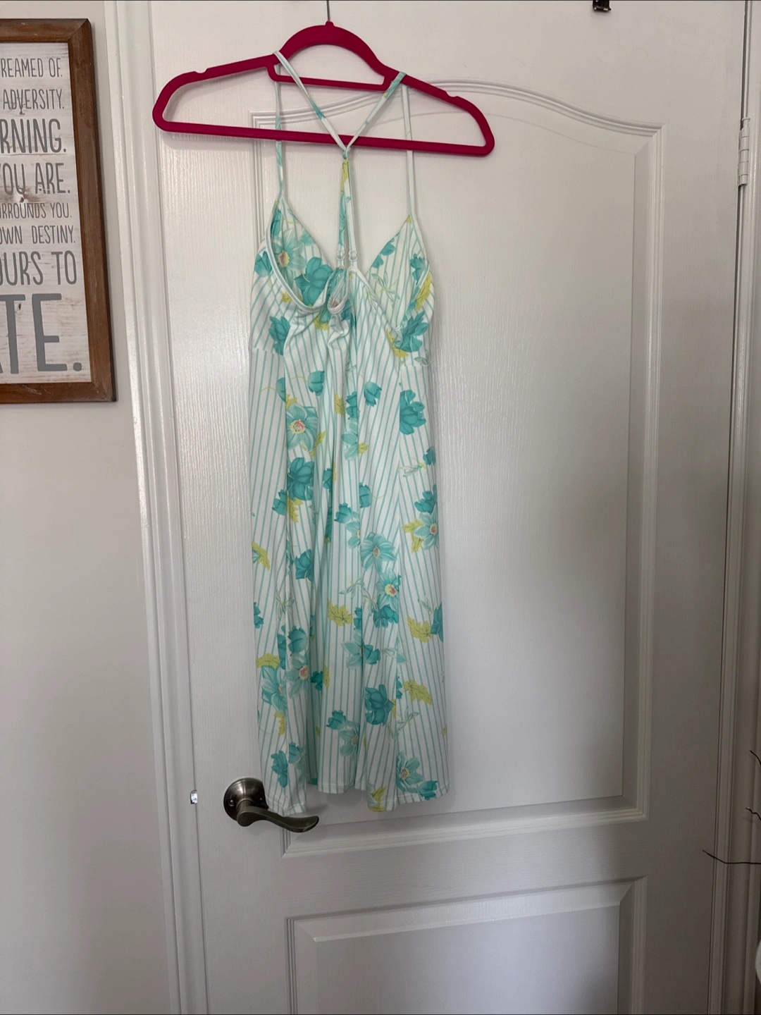Cute summer nightie. Floral pattern on a white background. Size medium. Features thin straps and a cup liners. Never worn.