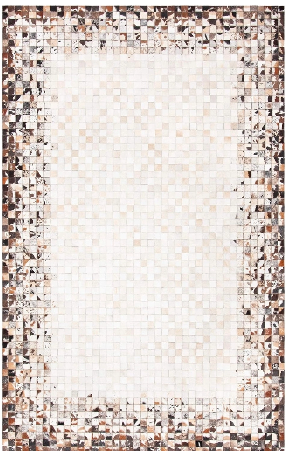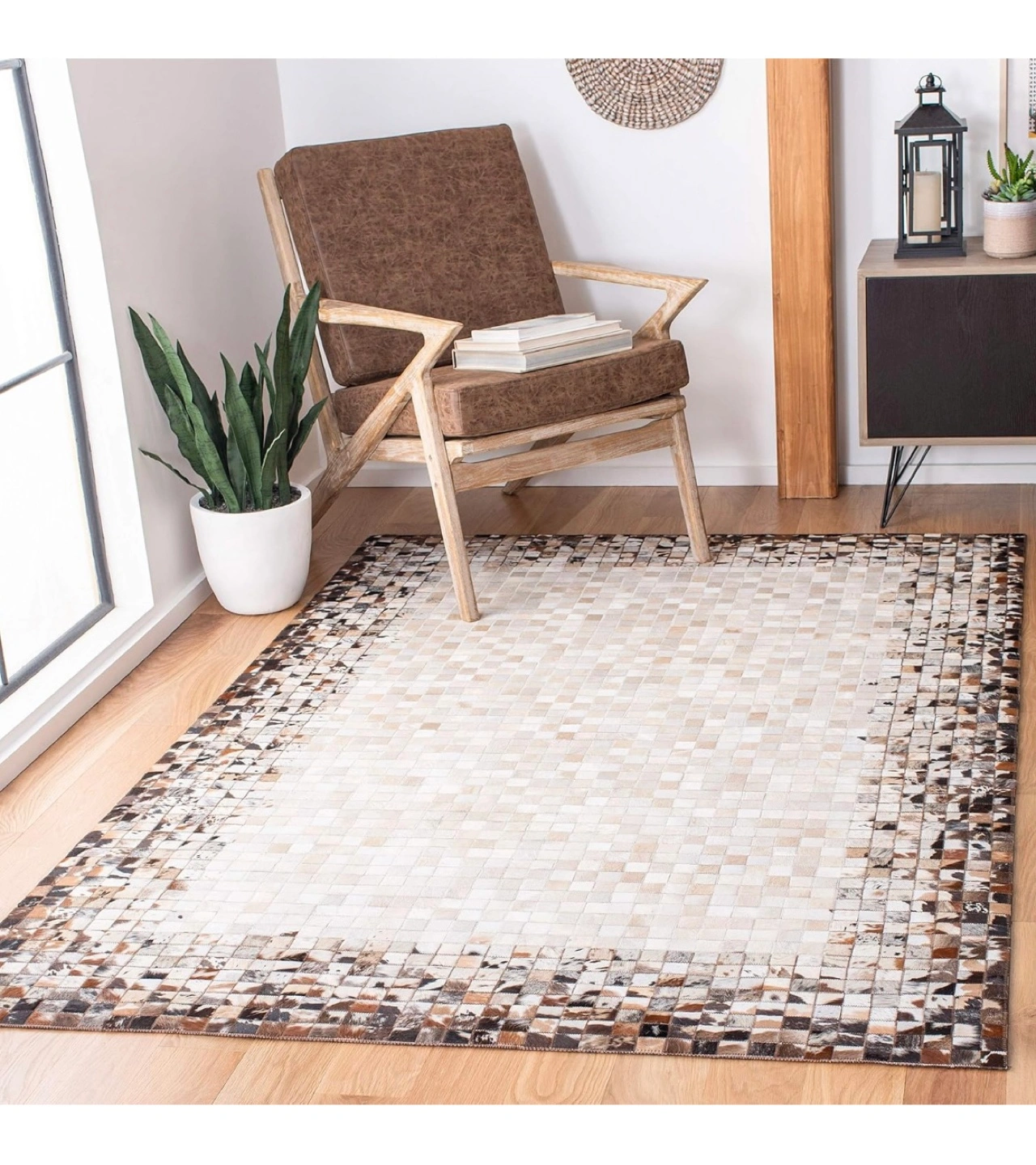 Safavieh Studio Leather Collection STL812B Handmade Mid-Century Modern Leather Area Rug, 5' x 8', Beige/Brown
