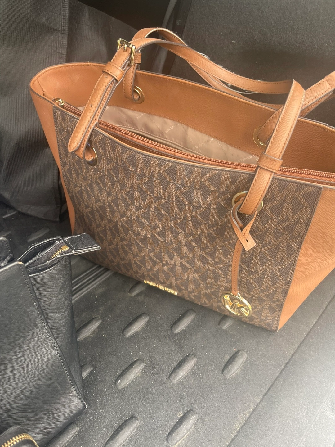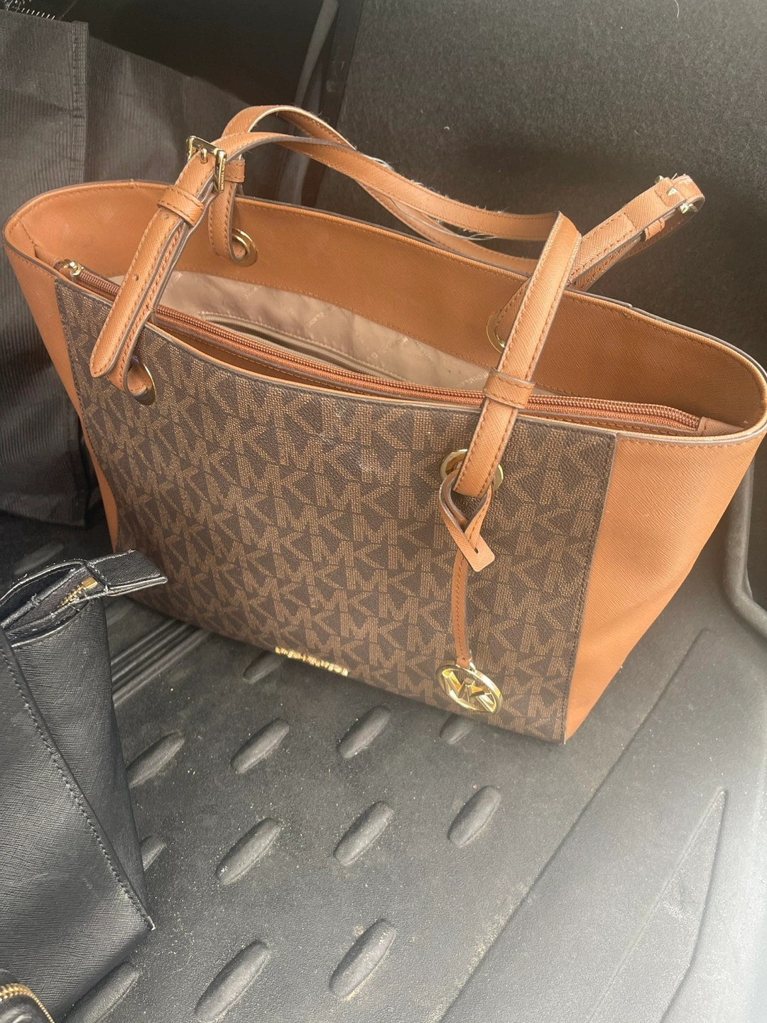 118Large brown tote bag. Top zip closure. Two top handles. Excellent for everyday use.