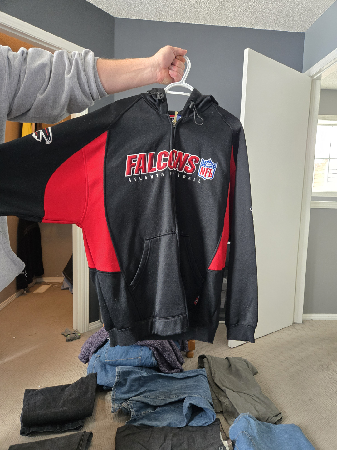 1 / 11 / 1Buy & SellAtlanta Falcons NFL Zip-Up HoodieAtlanta Falcons NFL Zip-Up Hoodie$25Men's black and red Atlanta Falcons zip-up hoodie. Features team logo and NFL branding. Great for game day or casual wear.ConditionLike newSizelargeWHERE TO MEETCheck LocationView MapSELLERverifiedJasonMckenzie Towne1236 reviews0 chats·0 favorites·6 viewsSEND CHAT TO SELLERHi Jason! I’m interested in your listing.Hi Jason! I’m interested in your listing.Get the Karrot app to chatSign In to chat