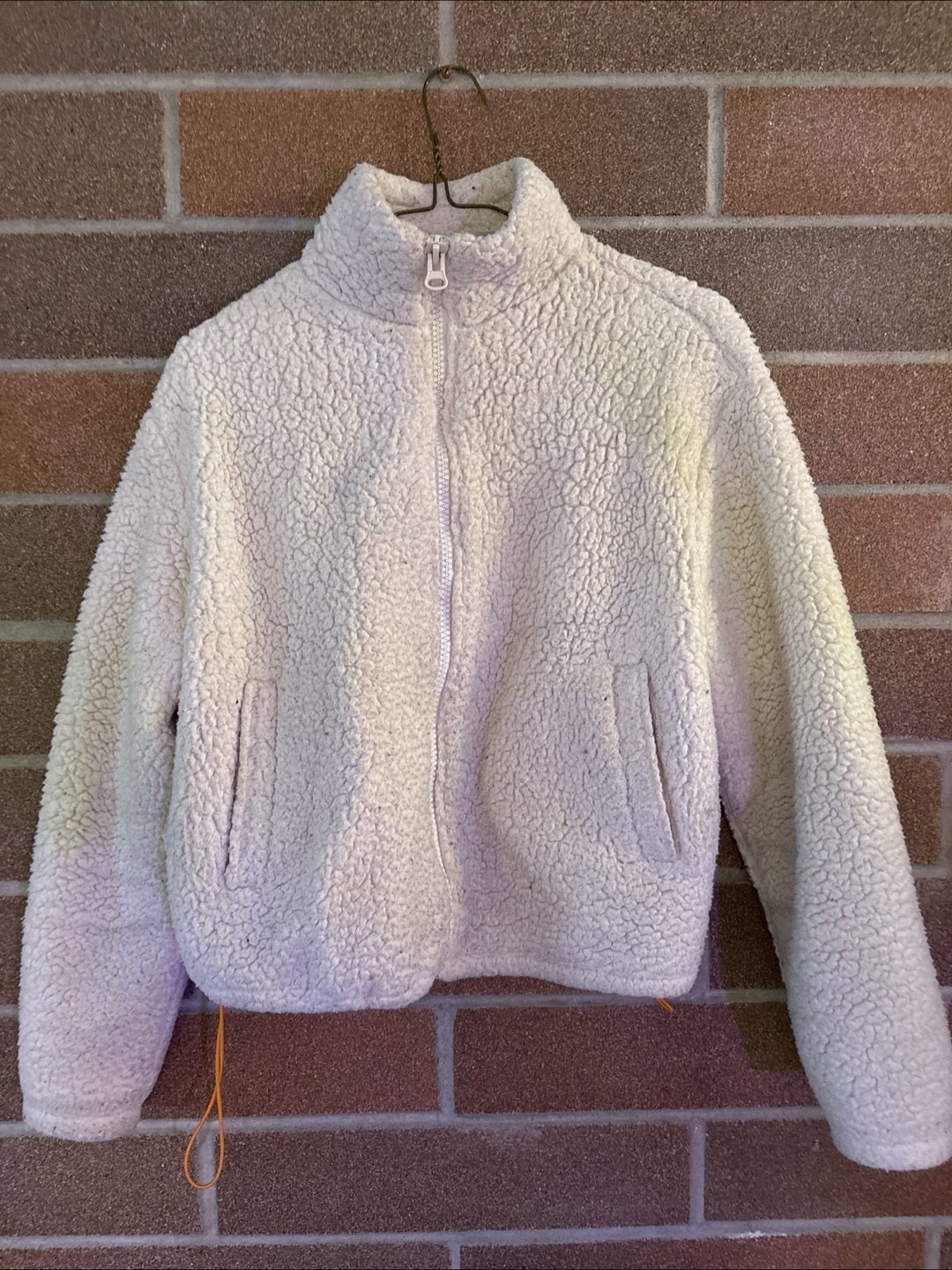 H&M White/Cream-Colored Fleece Jacket - Size Small