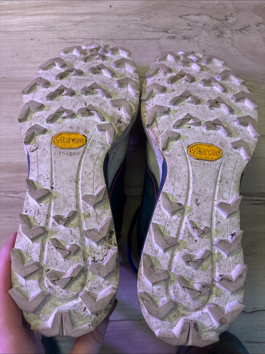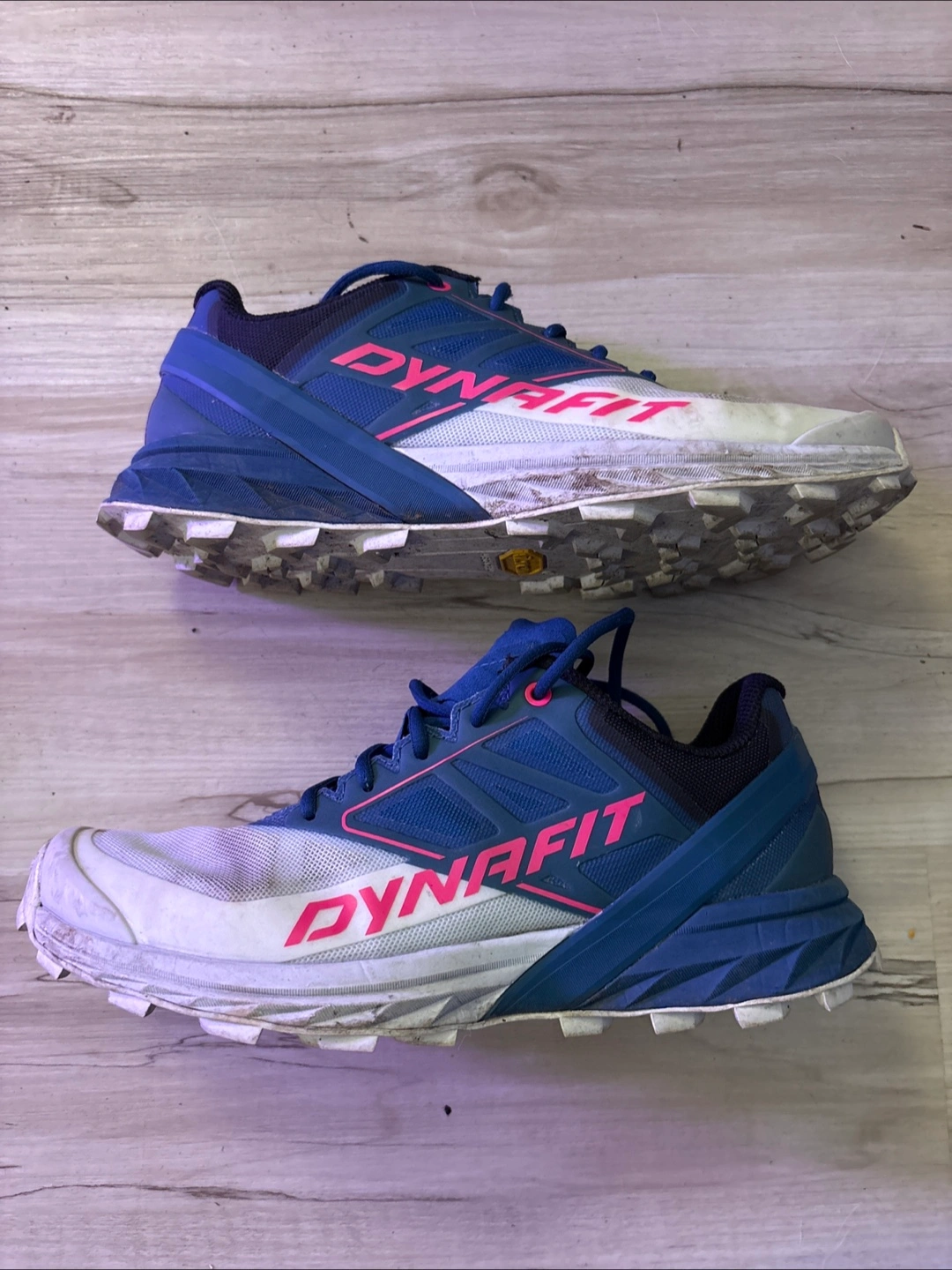 Dynafit Alpine Fjord-Nimbus trail running shoes. Women's size 7. Vibram Megagrip outsoles. Show some wear. Used but in good condition.