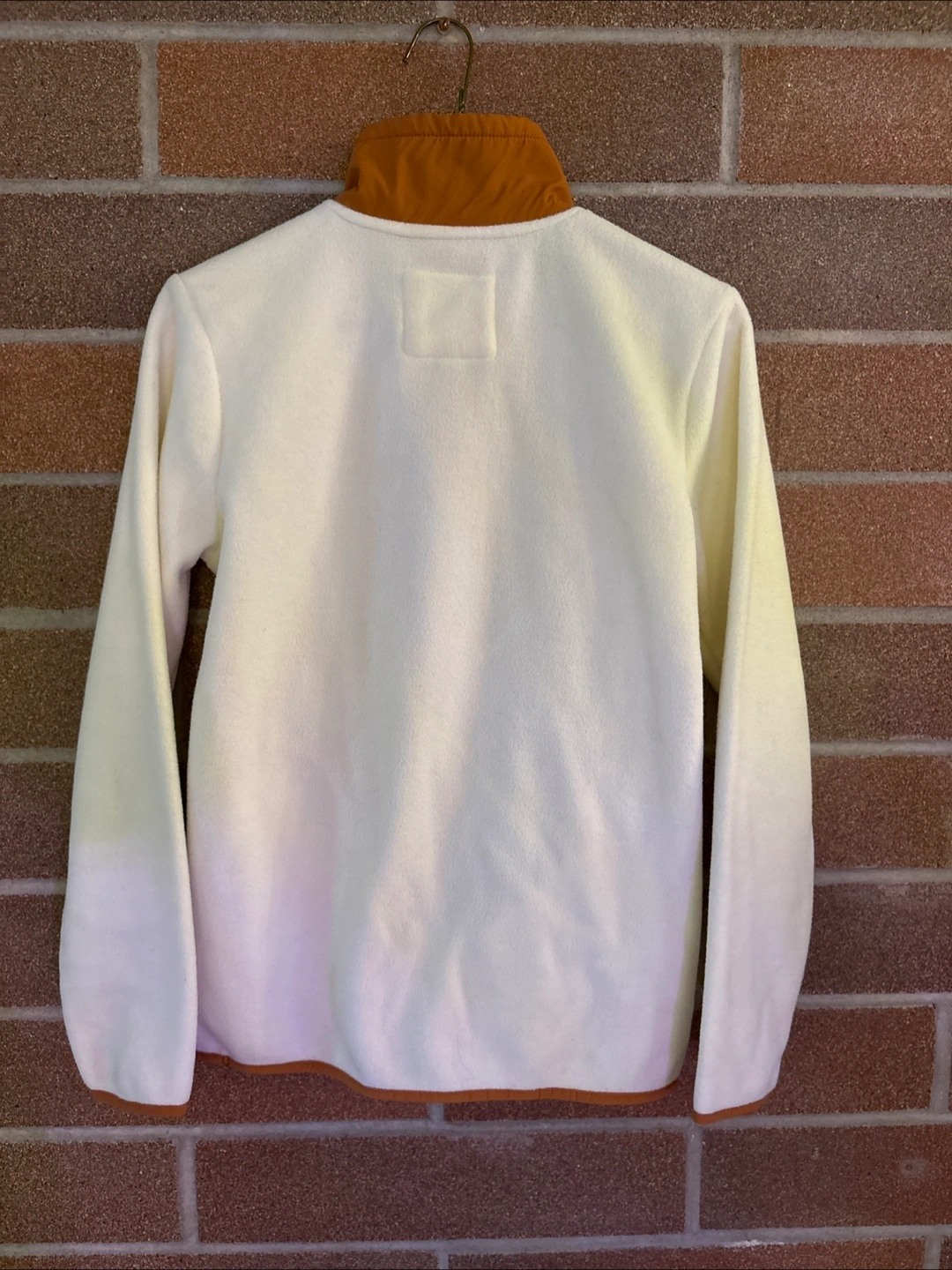 Women's size extra small Billabong Adventure Division pullover fleece. Cream coloured body with brown accents. Half zip closure. Long sleeves. Purpose-built outdoor product. Worn once, like new.