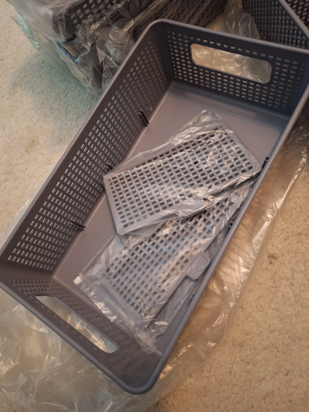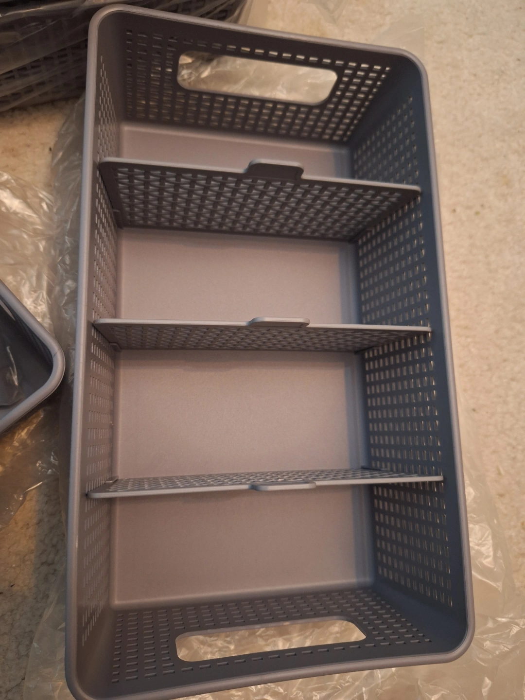 NEW Grey Plastic Storage Bins with Removable Dividers