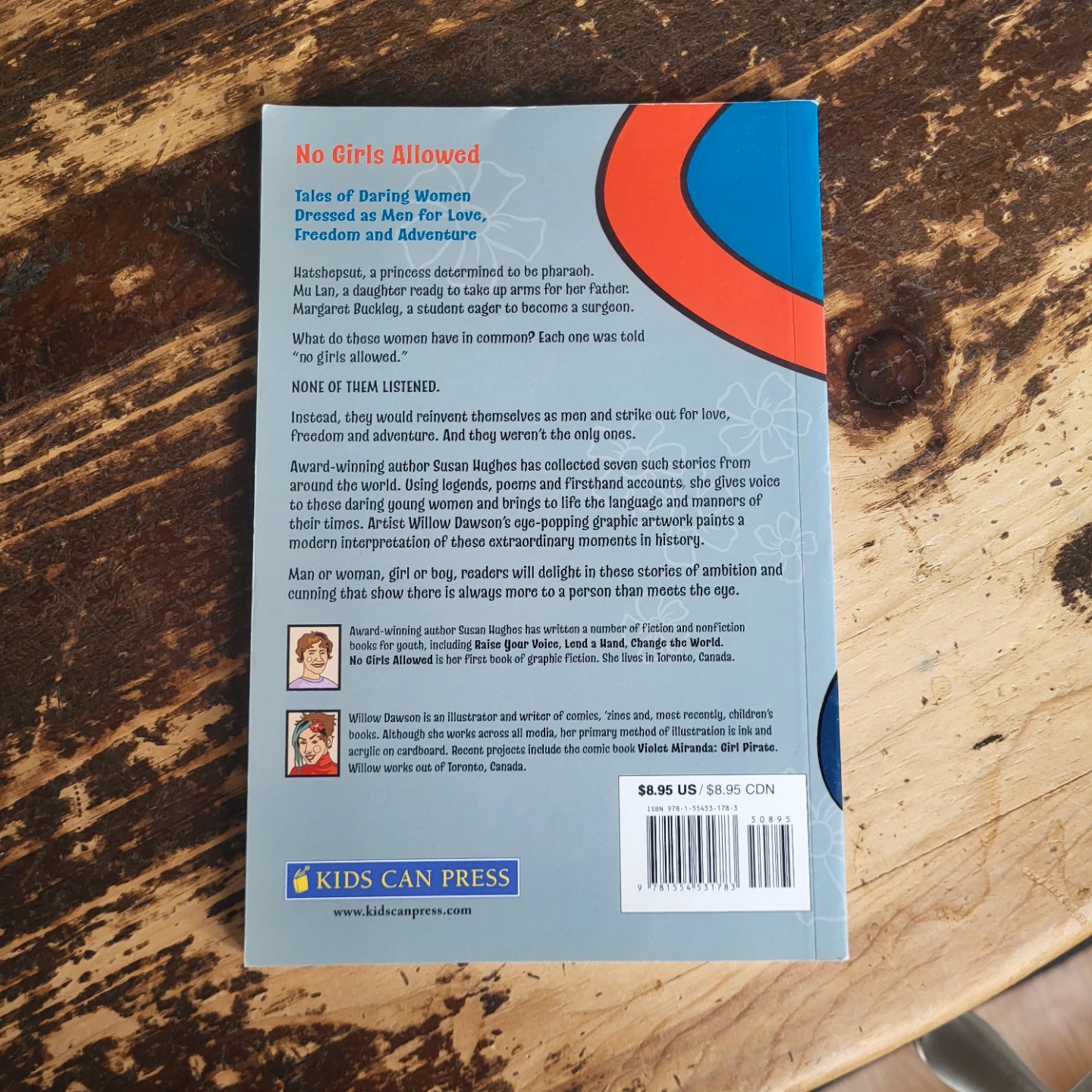 225Graphic novel about women dressed as men for love, freedom, and adventure. Written by Susan Hughes and illustrated by Willow Dawson. Published by Kids Can Press. Includes interesting stories and illustrations. Smoke free home.