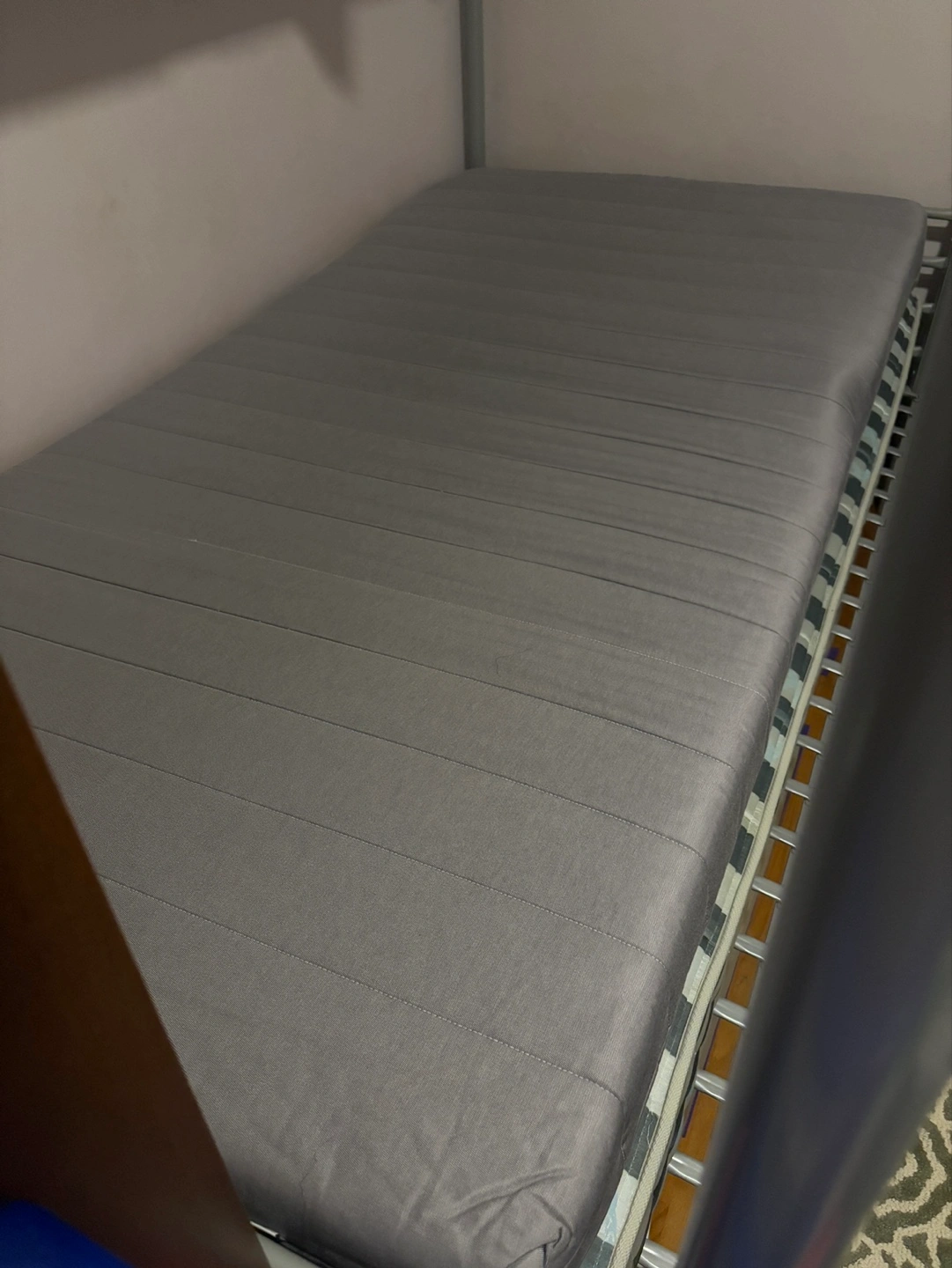 This gray coloured twin size Sultan Fageras mattress is clean, lightweight and comfortable. It was only used for the bed in the spare bedroom and was protected with a bedsheet on the bottom of the mattress, a mattress protector on top and bedsheets on top of all of that. The mattress does not come in contact with any pets and it is a non smoking household. Infrequently used and no longer need it.