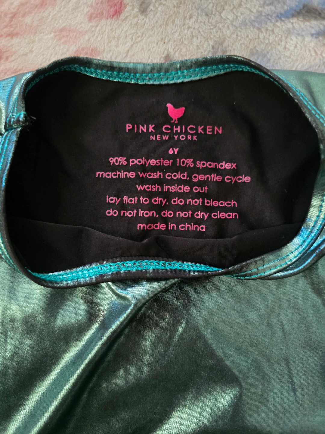 Pretty teal metallic dress. Long sleeves, fit and flare style. Size 6Y. Machine wash cold.
