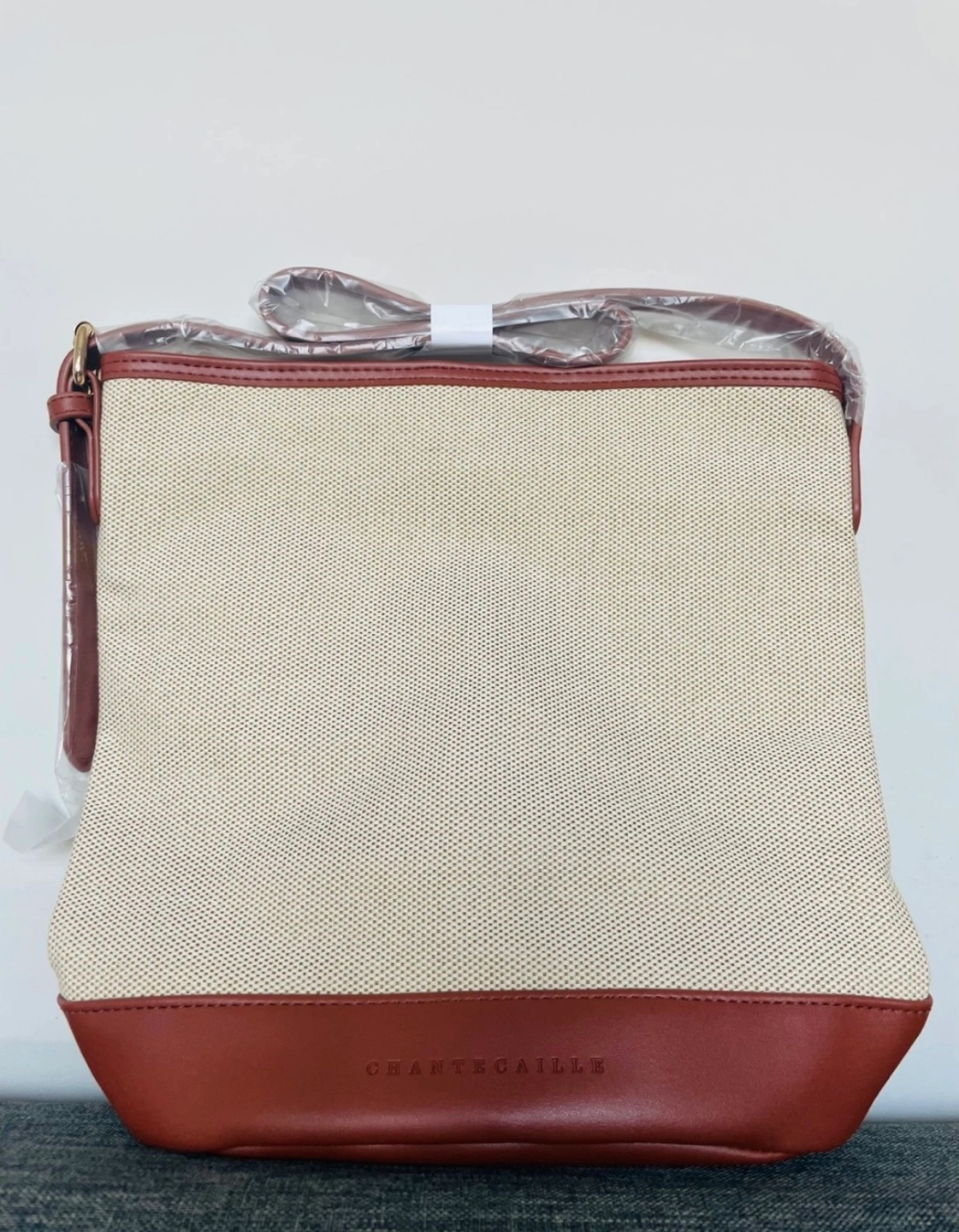 Brand new Chantecaille crossbody bag. Off-white canvas body, brown leather trim and adjustable strap with gold-tone hardware. Perfect for everyday use. 👜