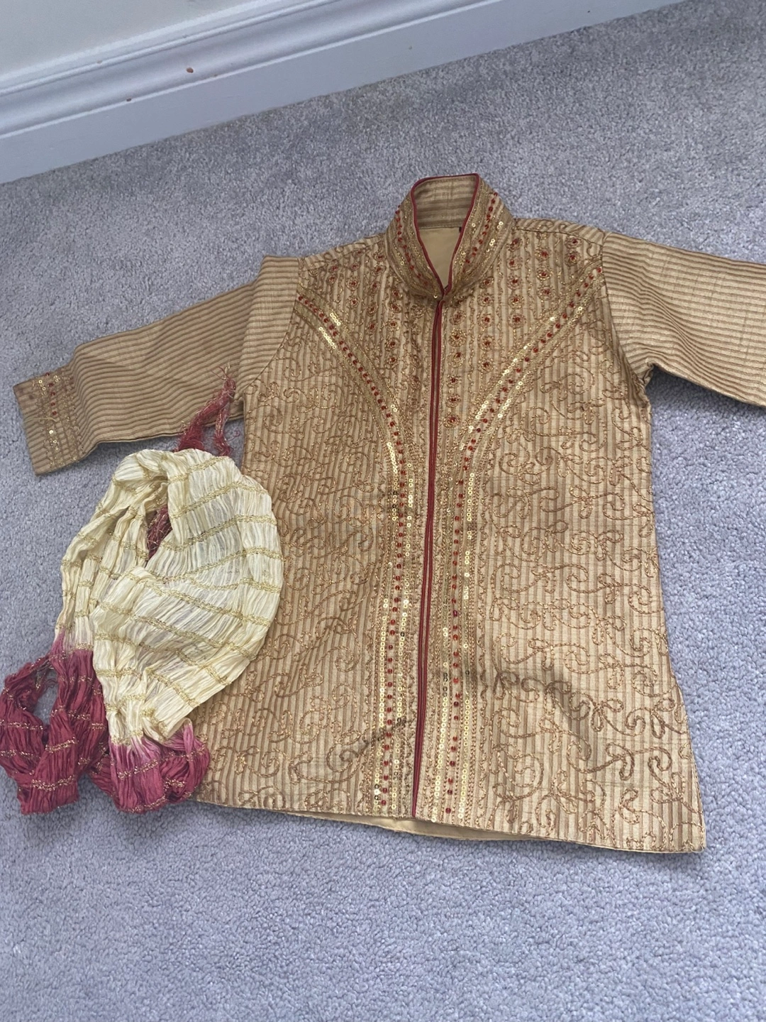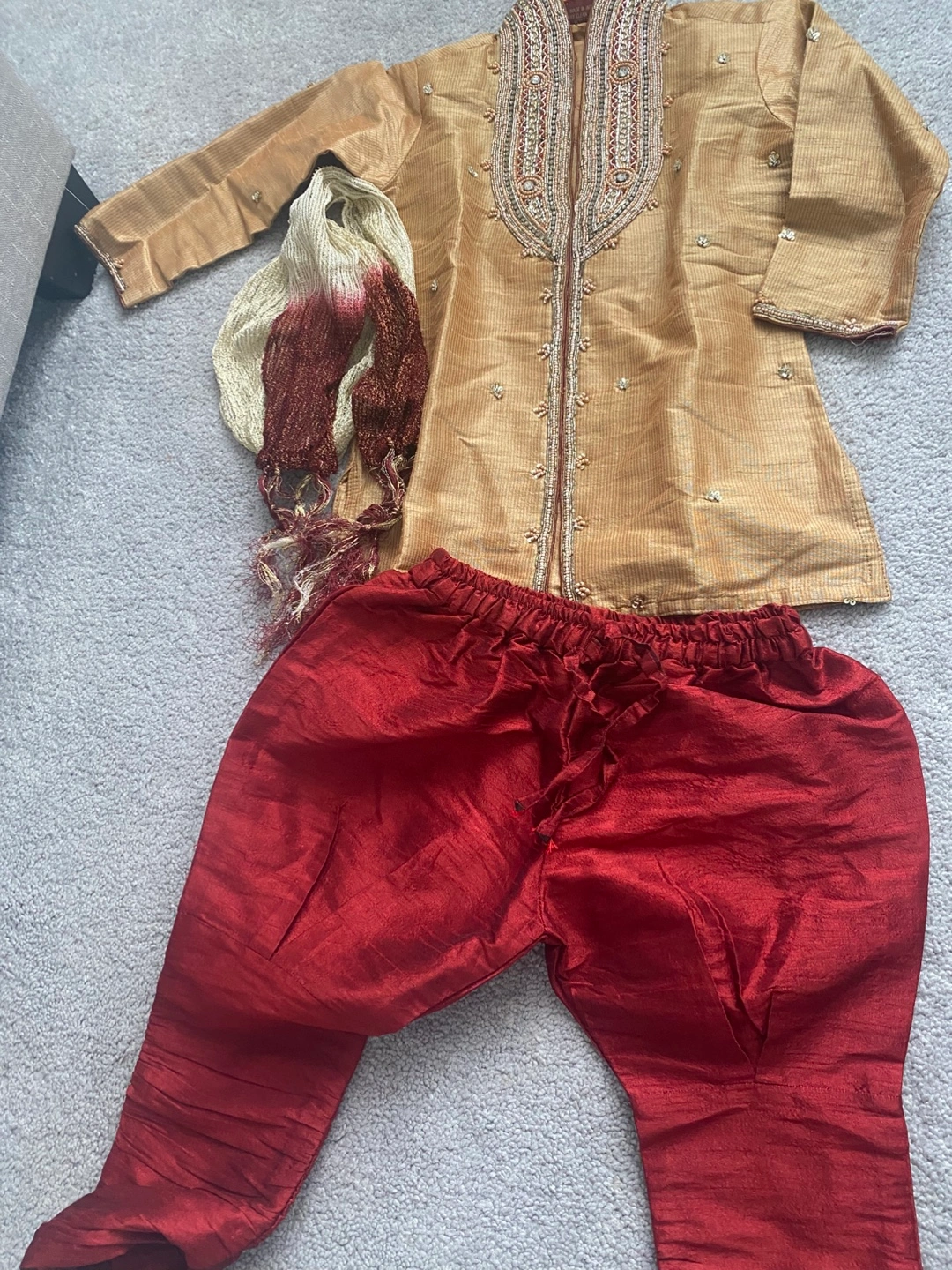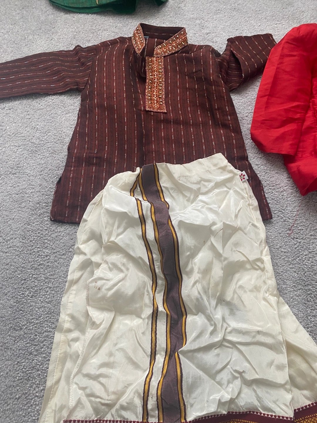 Five complete outfits. Suitable for various occasions. Includes kurta, pyjamas, and/or vests. Different colours and styles. Great for special events. Gently Used Indian Baby Clothes for Sale - 10 pairs of adorable outfits, each worn only once - Excellent condition - Price: $5 per pair or $50 for all 10 pairs - Note: 3 outfits are missing pants, price negotiable for these - Pickup location: Pickering (near Whites Rd and Taunton Rd)