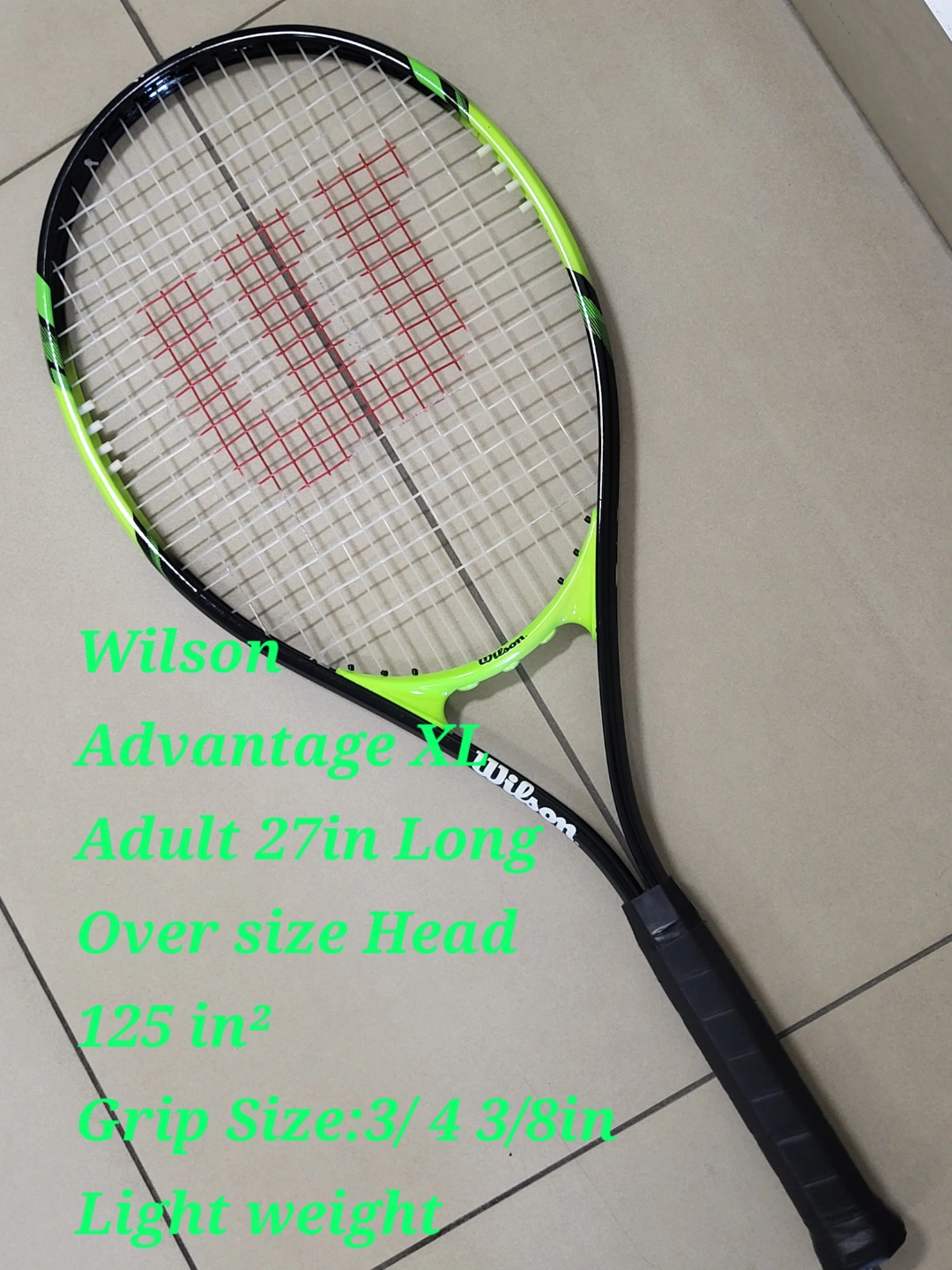 Oversize head, 125 sq. in. Grip size 3/4 3 3/8 in. Lightweight racquet. Great for beginners.
