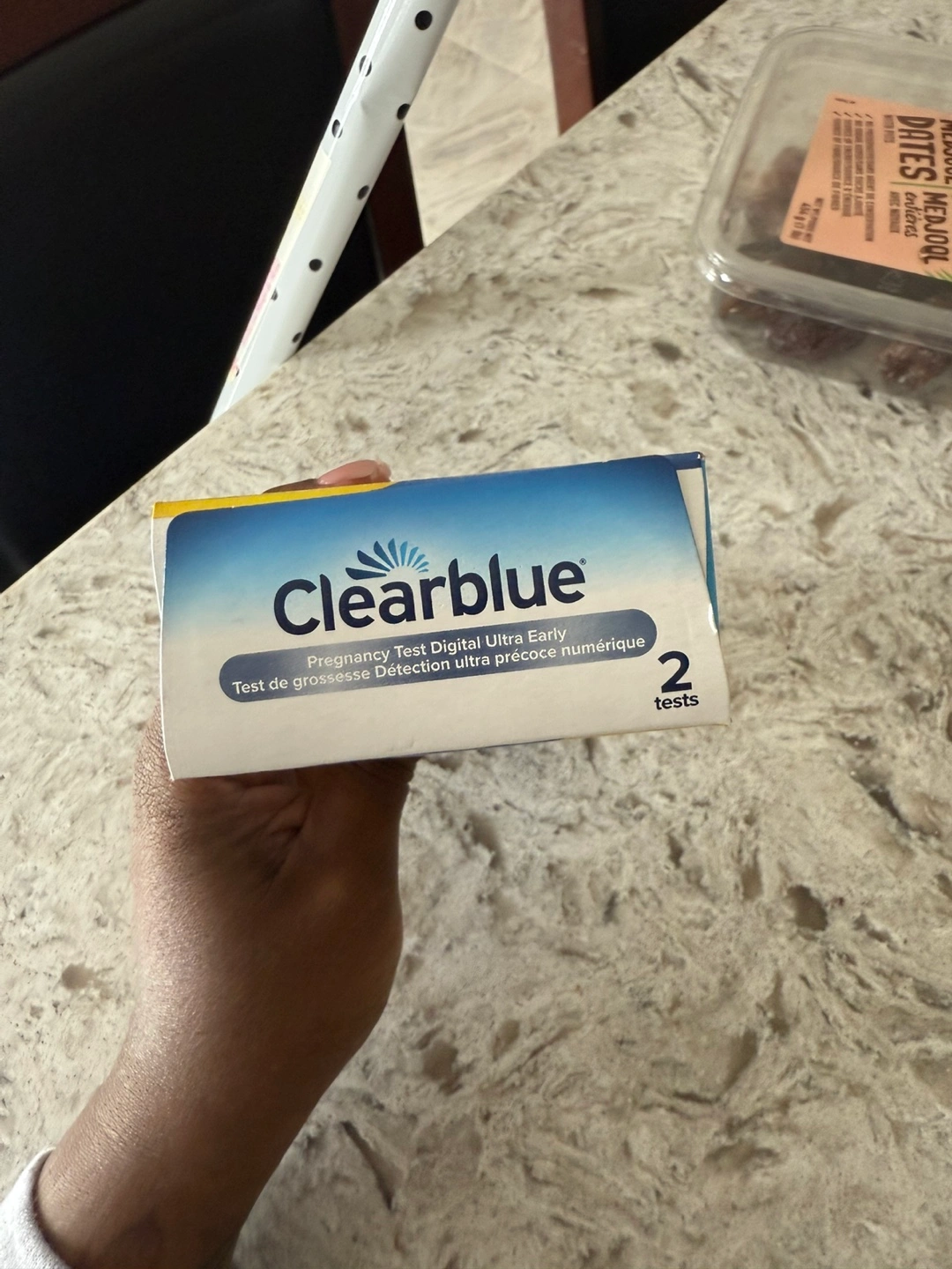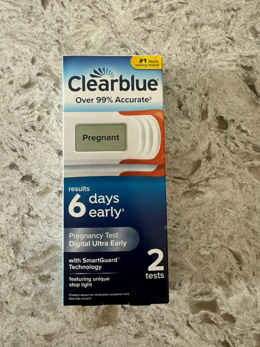 New, unopened box. Two pregnancy tests. Digital results. Ultra-early detection. Expiry date: September 30, 2027.