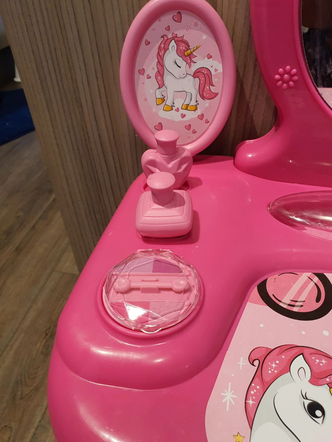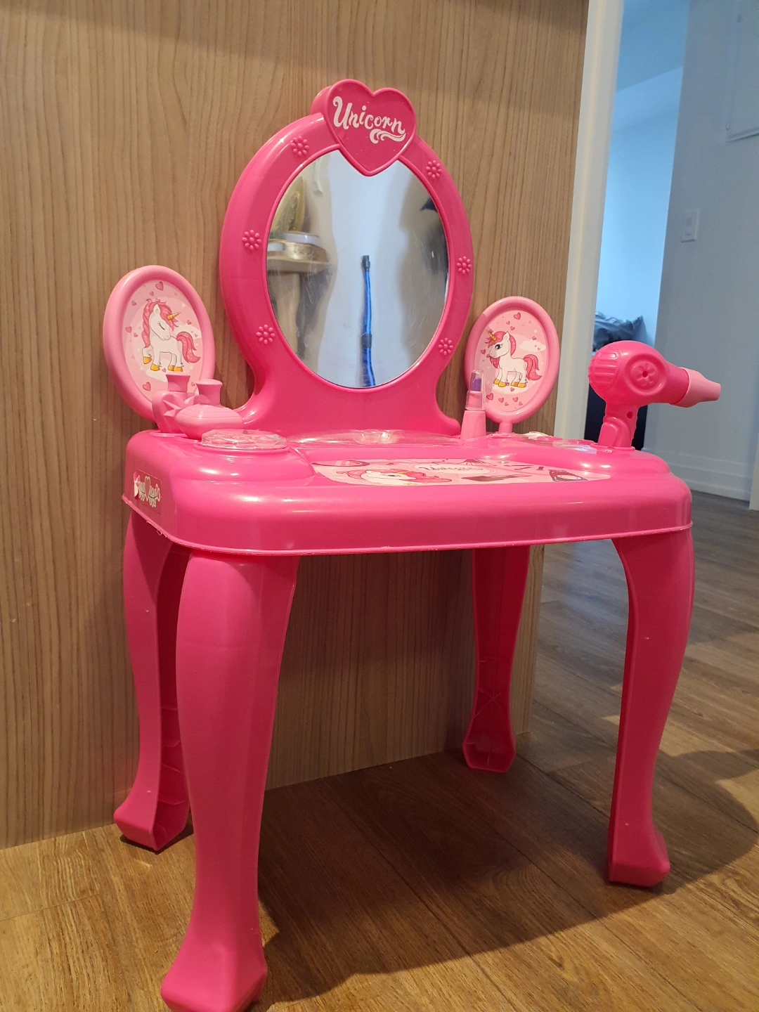 Pink Unicorn dresser table with stool and Accessories#freecycle