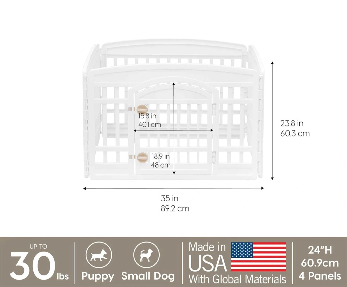 IRIS USA 4-Panel Dog Pen with Door, 60 cm Tall Foldable Fence Puppy Pet Playpen Indoor Outdoor - White