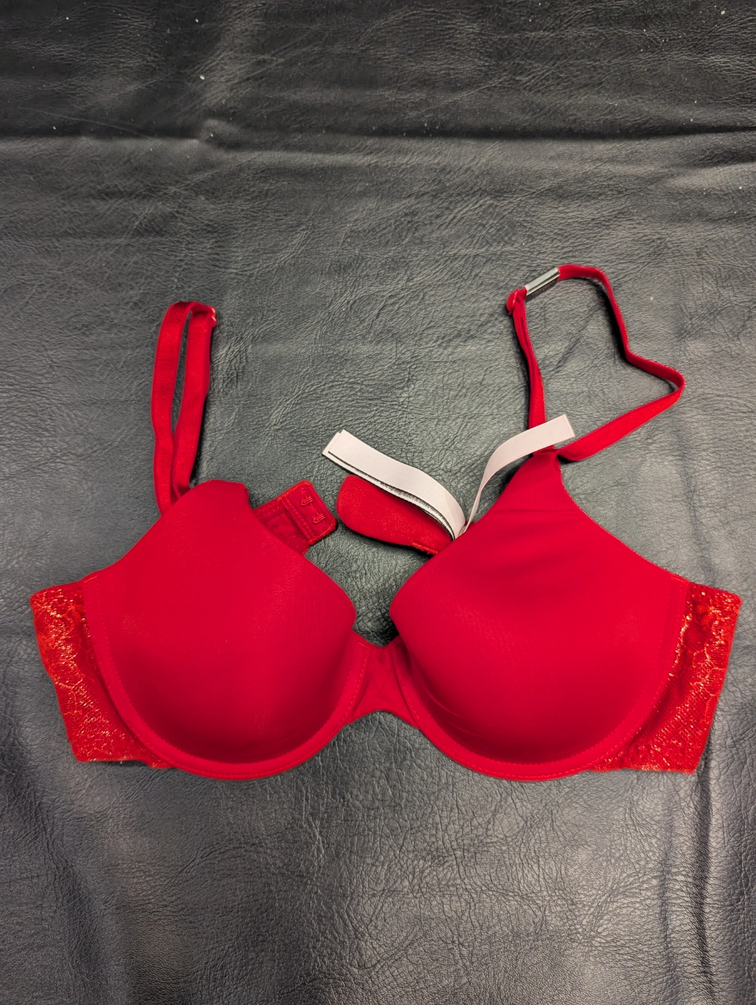 Victoria's Secret red bra. Underwire bra with lace detailing. Adjustable straps.Brand new with tags on still, need to sell as too small to use.