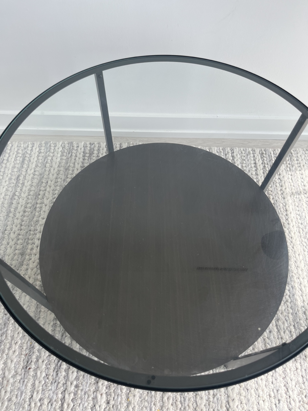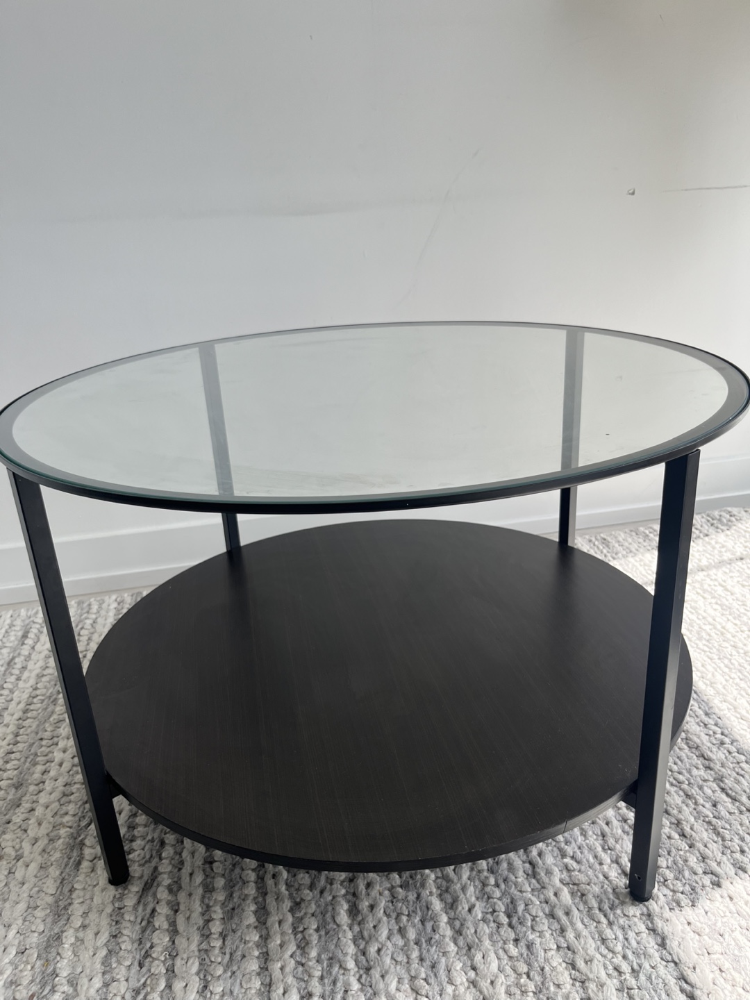 Round Glass Top Coffee Table with Lower Shelf