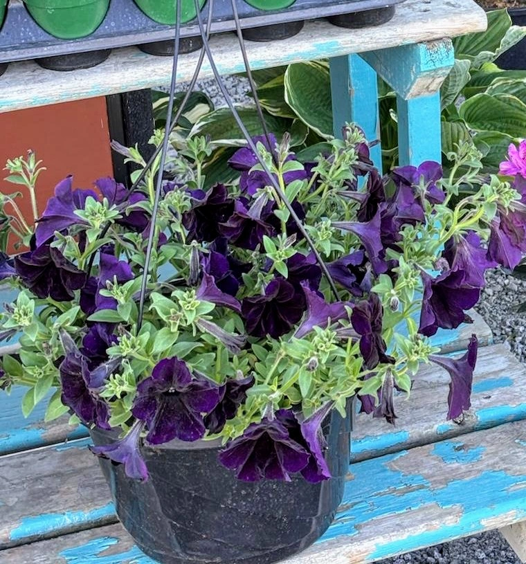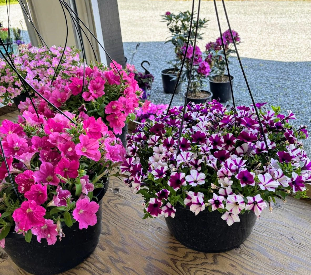 Beautiful petunias in hanging baskets. Various colours available. Perfect for adding colour to your garden or patio or for Mother's day! Deal is 2 for $45!