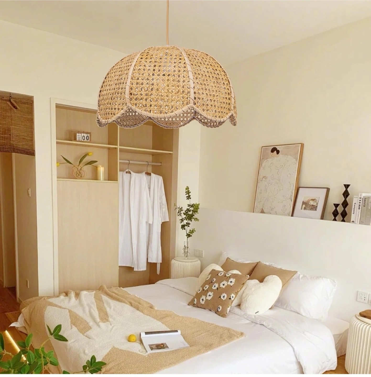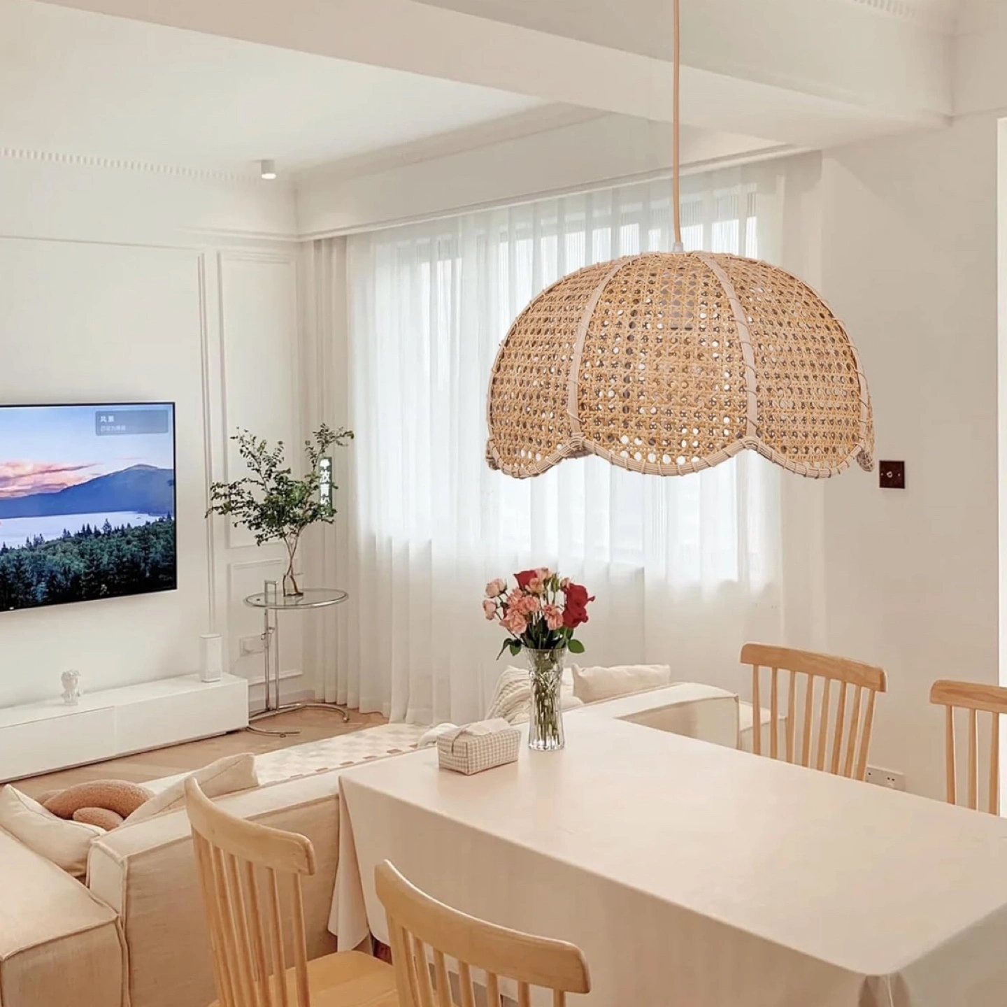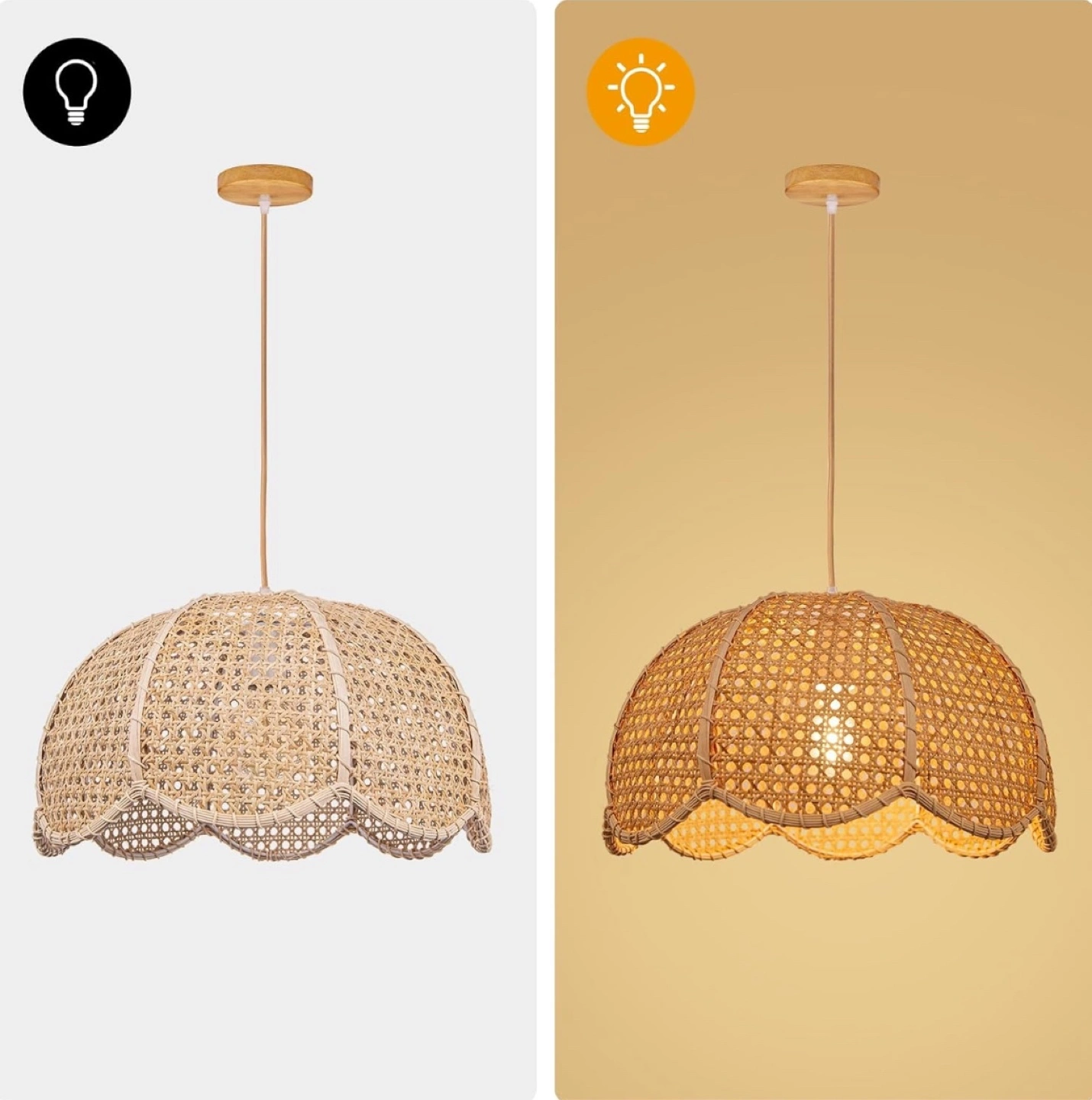 Brand WalmHomie Colour Natural Material Rattan, Iron Style Country Rustic Light fixture form Pendant Room type Entryway, Kitchen, Bedroom, Living Room, Dining Room 💡[Natural Material]: this floral chandelier is made from rattan, beautiful farmhouse wicker light fixture, elegant and chic lampshade. 💡[Various Places]: our rustic large pendant light is a great home decor for farmhouse, living rooms, dining rooms, bedrooms, restaurants, kitchens, laundry rooms, hallways, cafes, basements, stairwells, libraries, office and more. 💡[Care and Maintenance Methods]: please wring the wet cloth or using a soft cloth to wipe the dust gently. Please note that this hanging lighting is handwoven, so the size may have an error of about 1~2 centimeters. 💡[Easy to Install]: E26/E27 bulb base, 60W(Max), 110~130V, hardwired. NOT BULB INCLUDED, package includes lampshade and all mounting hardware accessories.
