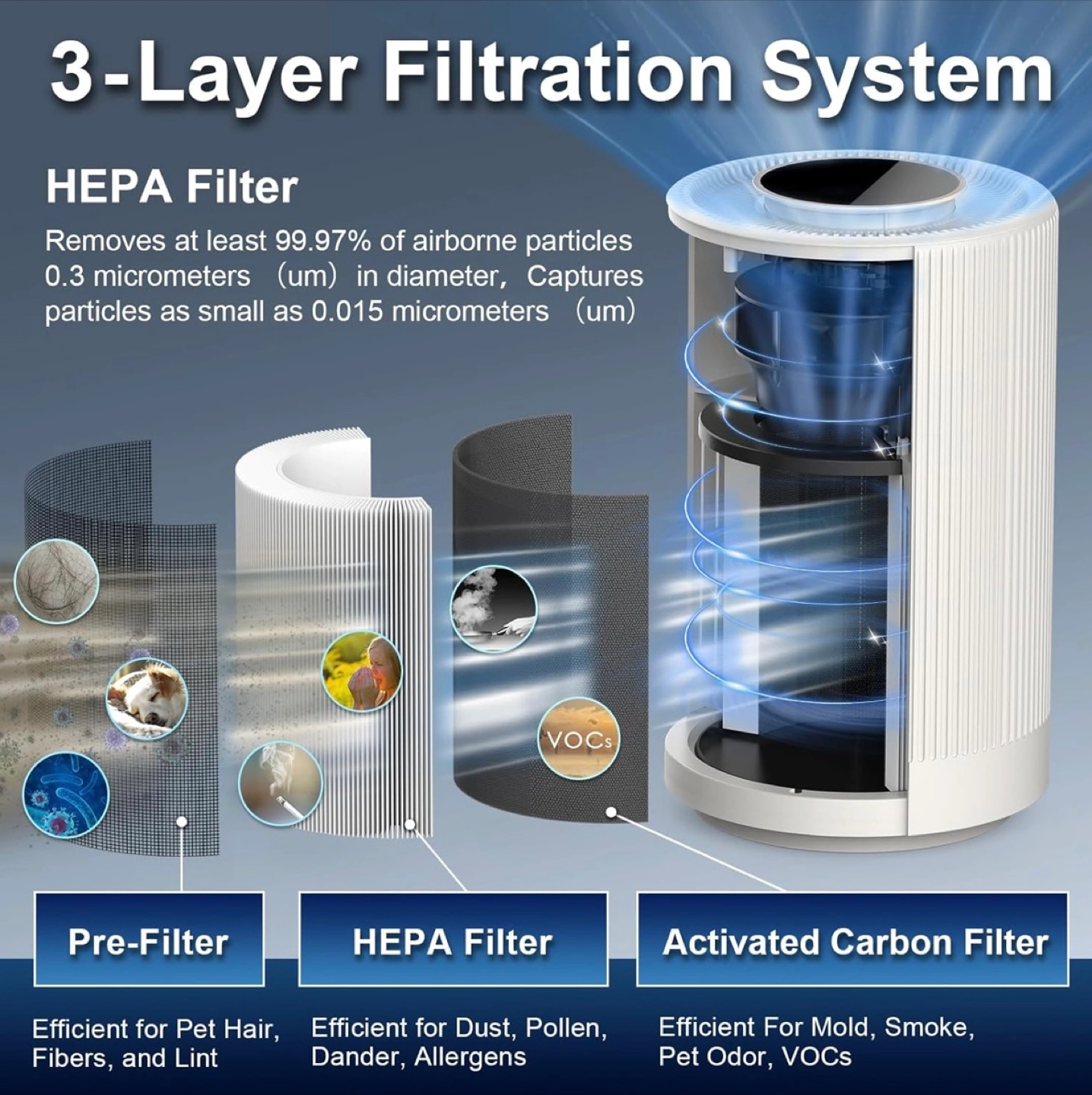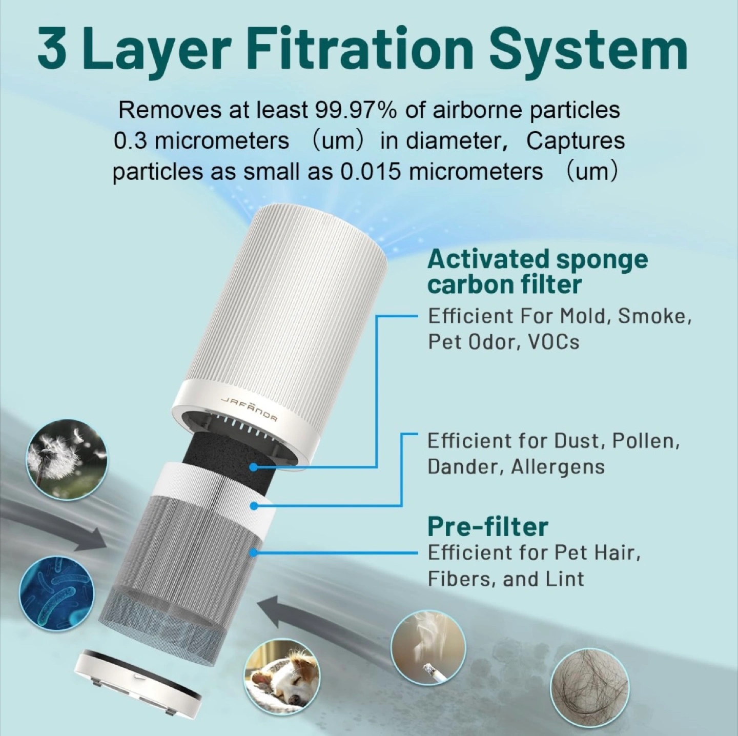 JAFANDA Air Purifier with 3-Layer Filtration System