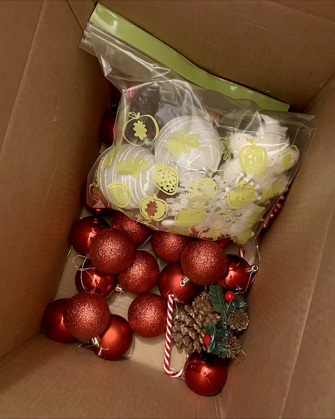 6ft artificial Christmas tree, unlit. Includes various ornaments, red and white theme. Also includes four strands of Noma Advanced EverTough mini LED lights; two warm white, one multicoloured. Tree in great condition, ornaments and lights lightly used.
