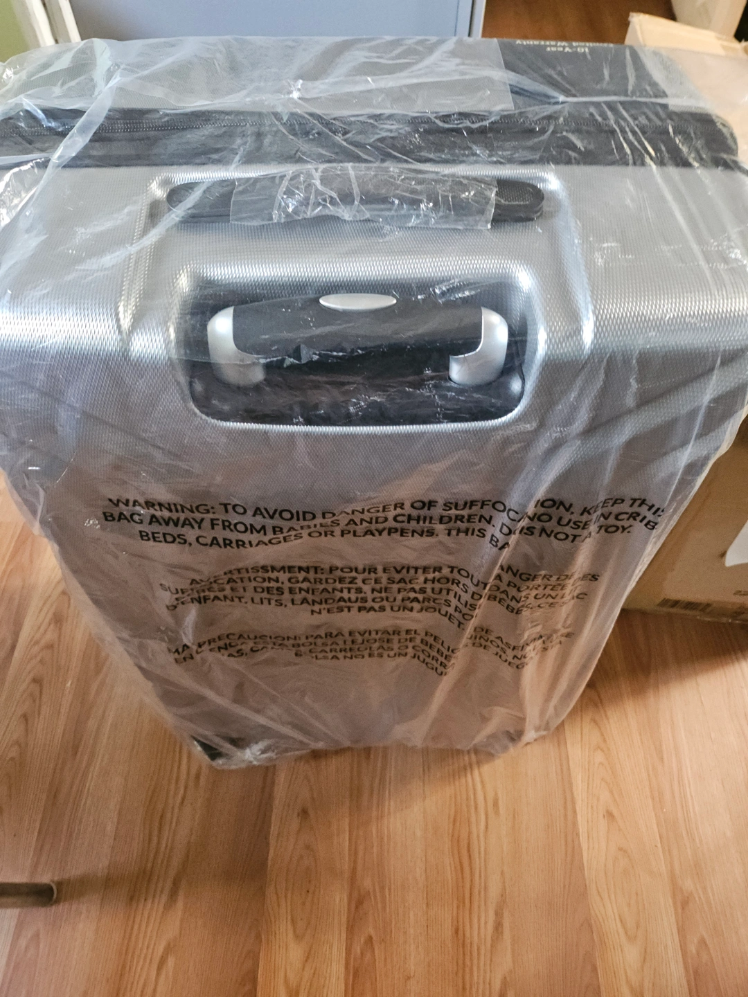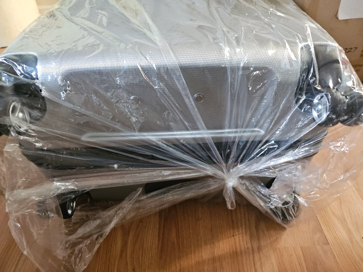 11Dx18Hx30LNew silver suitcase. Lockable zippers and eight-wheel stability. Rigorously tested for performance. Still in original plastic.
