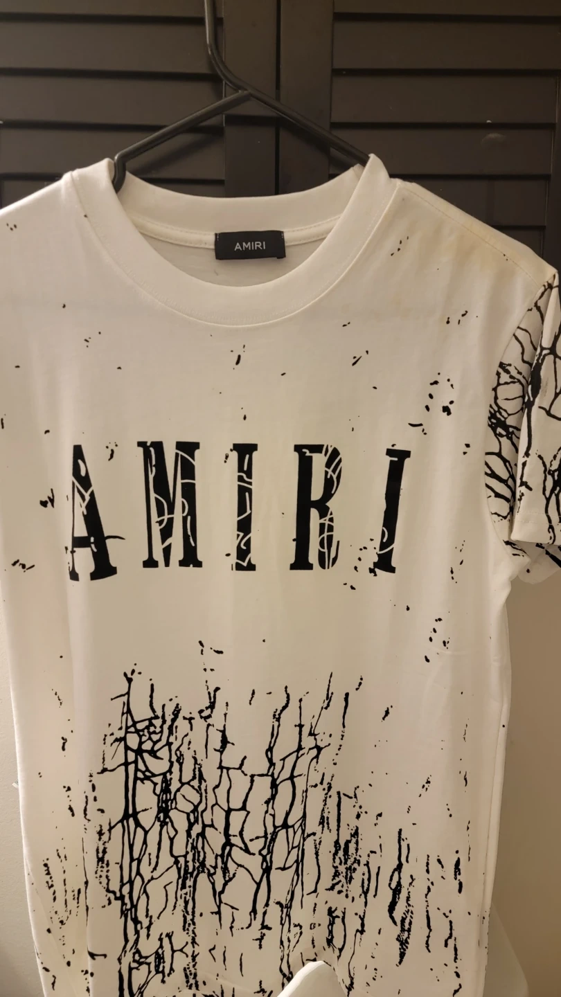 This is an Amiri t-shirt made from 100% cotton. It's a white tee with a black graphic print. Made in USA.