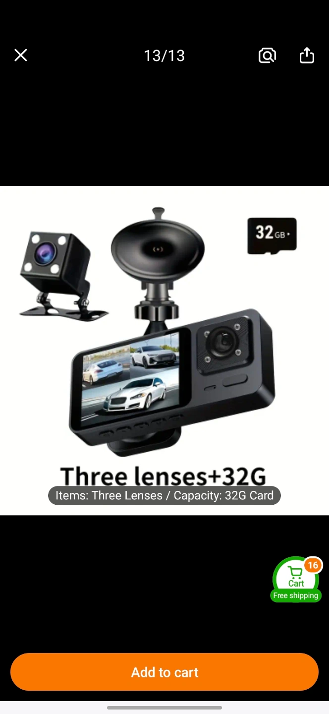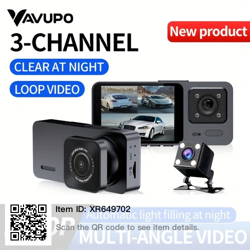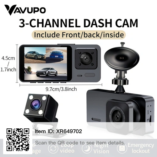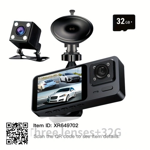 Three-lens dash cam. Includes front, back, and interior cameras. 32GB memory card included. Parking monitoring. Night vision. Loop recording. Item ID: XR649702 PICK FROM OSHAWA CENTRE OR SCARBOROUGH WARDEN AVE COSTCO