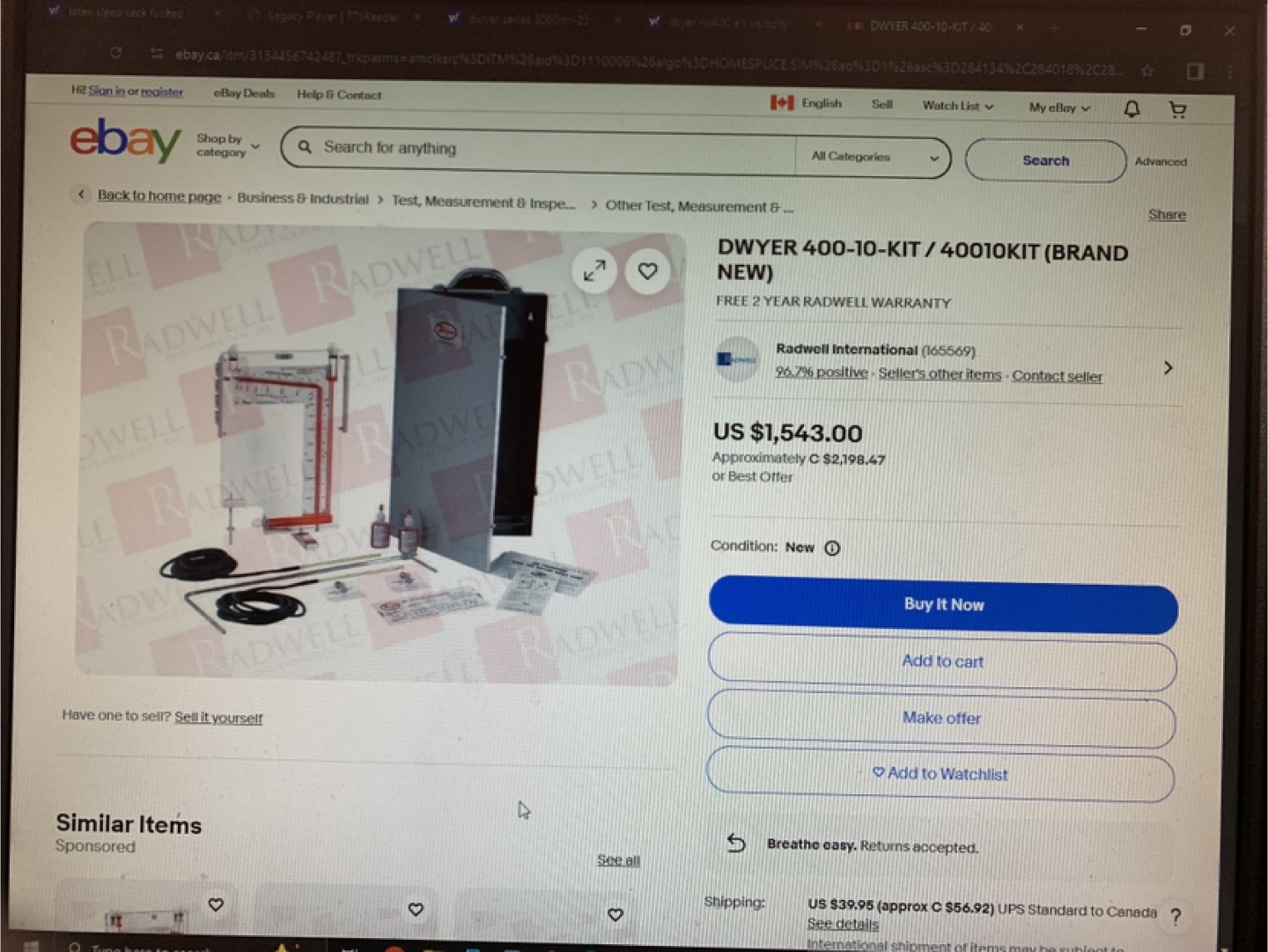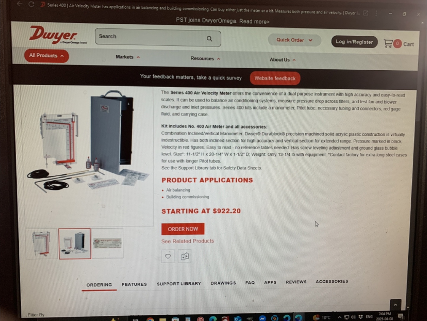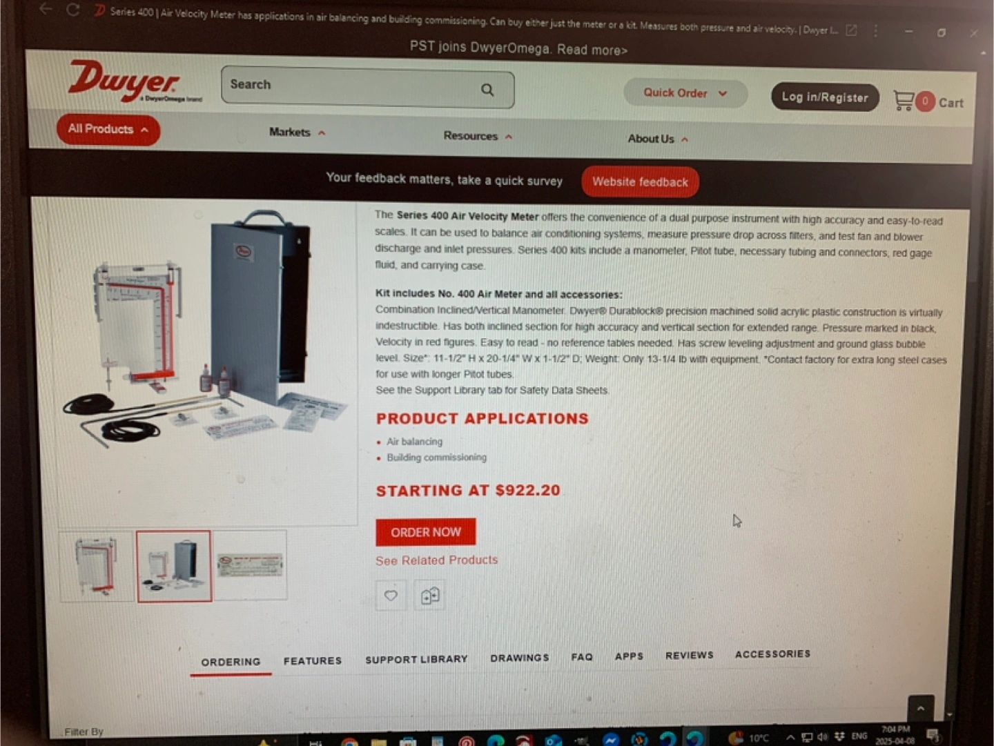 Dual purpose instrument with high accuracy and easy-to-read scales. Measures pressure, airflow, and fan and blower discharge pressure. Includes manometer, probe tubes, accessories, and metal carrying case. Neaver bin used Bought for work. Payed $1800.00