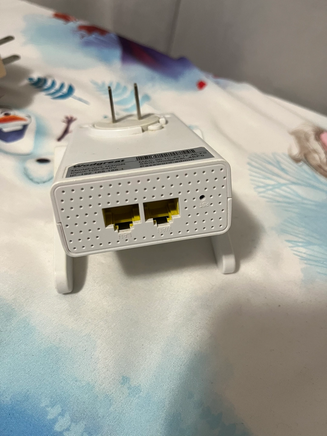 Wireless extender. Small, white, wall-plug design. Two antennas. Model WG-N300R. Includes WAN, LAN, and WiFi ports.