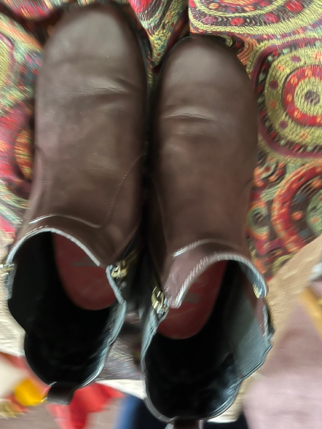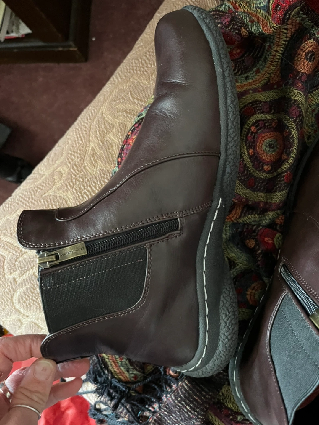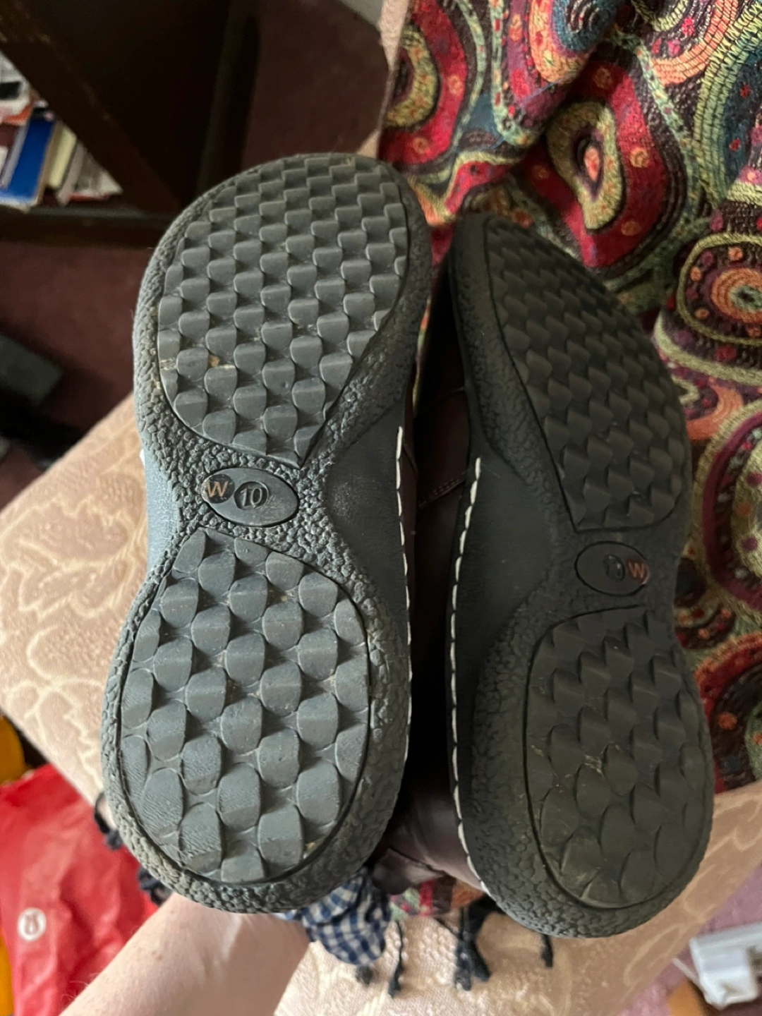 Pair of women's burgundy leather ankle boots. Side zippers. Size 10W. Like new condition. I put different insoles in them and can't find the originals. I have wide feet but these are quite wide, could fit thick socks.
