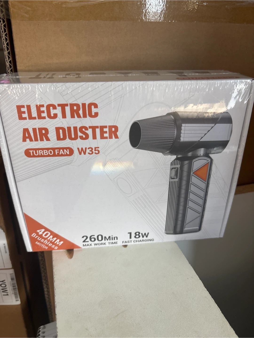 This electric air duster has a turbo fan with a 40mm brushless motor. It offers a max work time of 260 minutes and 18W fast charging. It's useful for cleaning electronics and other hard-to-reach dusty areas.