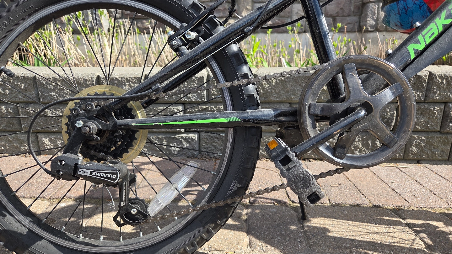 The bike is in very good conditions. It has 6 gears.It comes with a helmet that has a brim, 2 reflectors at the back for night biking, adjustable strap, a protective shell and a beautiful spider-man design to top it off.. I would highly recommend for a budget-friendly purchase, because the bike almost looks brand new! We took good care of it, and decided to sell it because the bike got too small for my kids. And don't worry, this bike is fully equipped with reflectors, so you could be able to spot your kids at night!