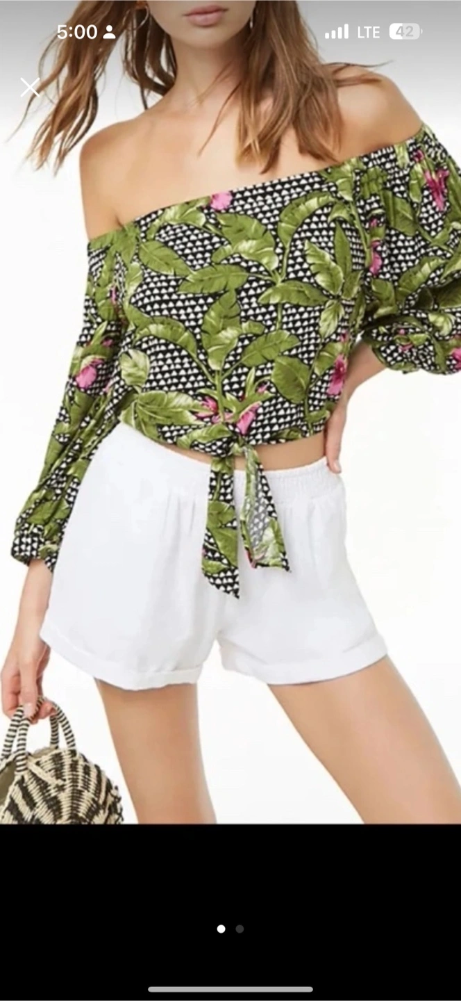 Forever 21 Off-the-Shoulder Tie-Front Blouse & White Shorts