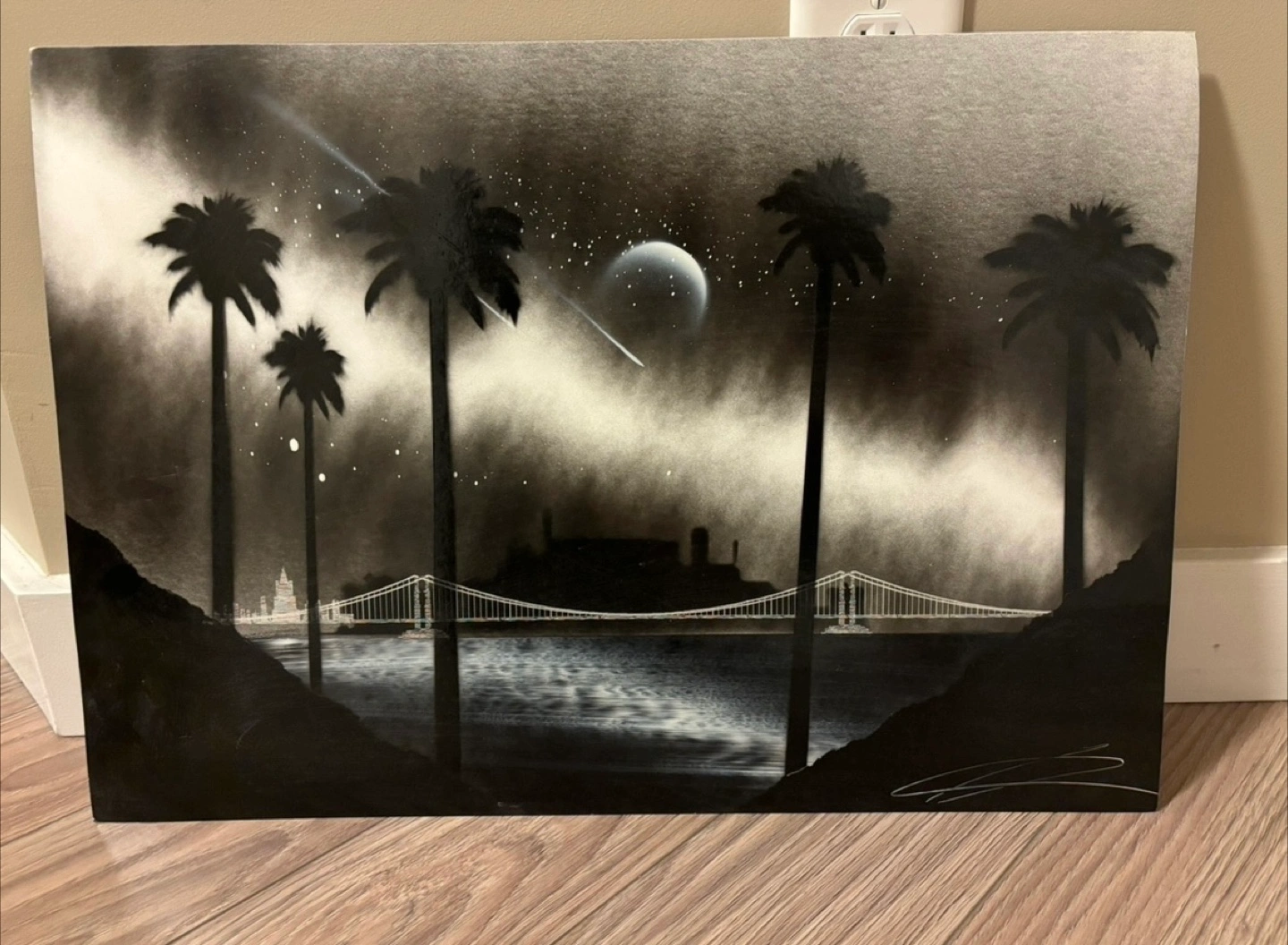 Hand made spray paint art of San Francisco skyline - vacation souvenir.