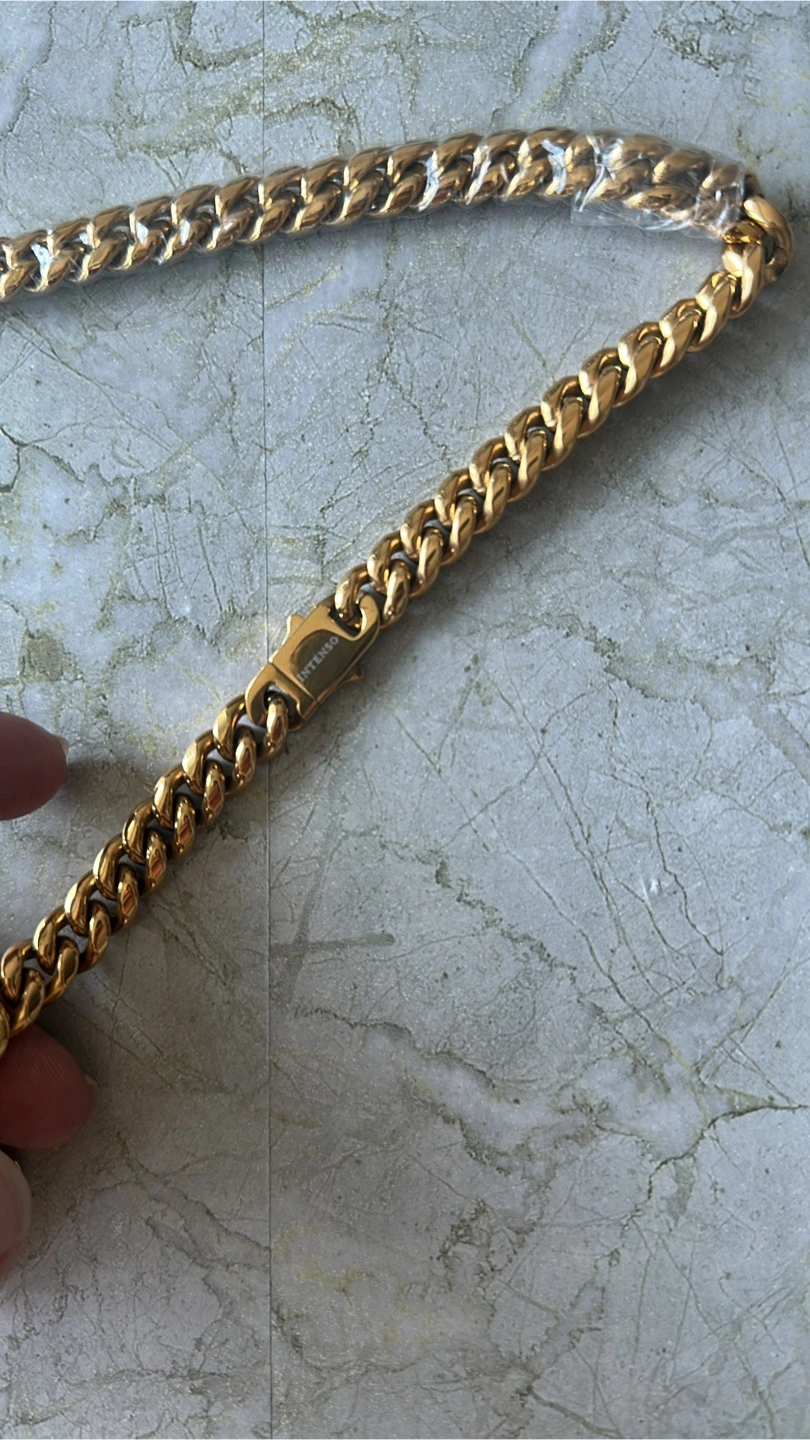 100% water proof , rust proof , tarnish proof , coated in Pure 18 K Gold, 10 MM 22 inch Cuban Link Chain. 304 stainless steel.