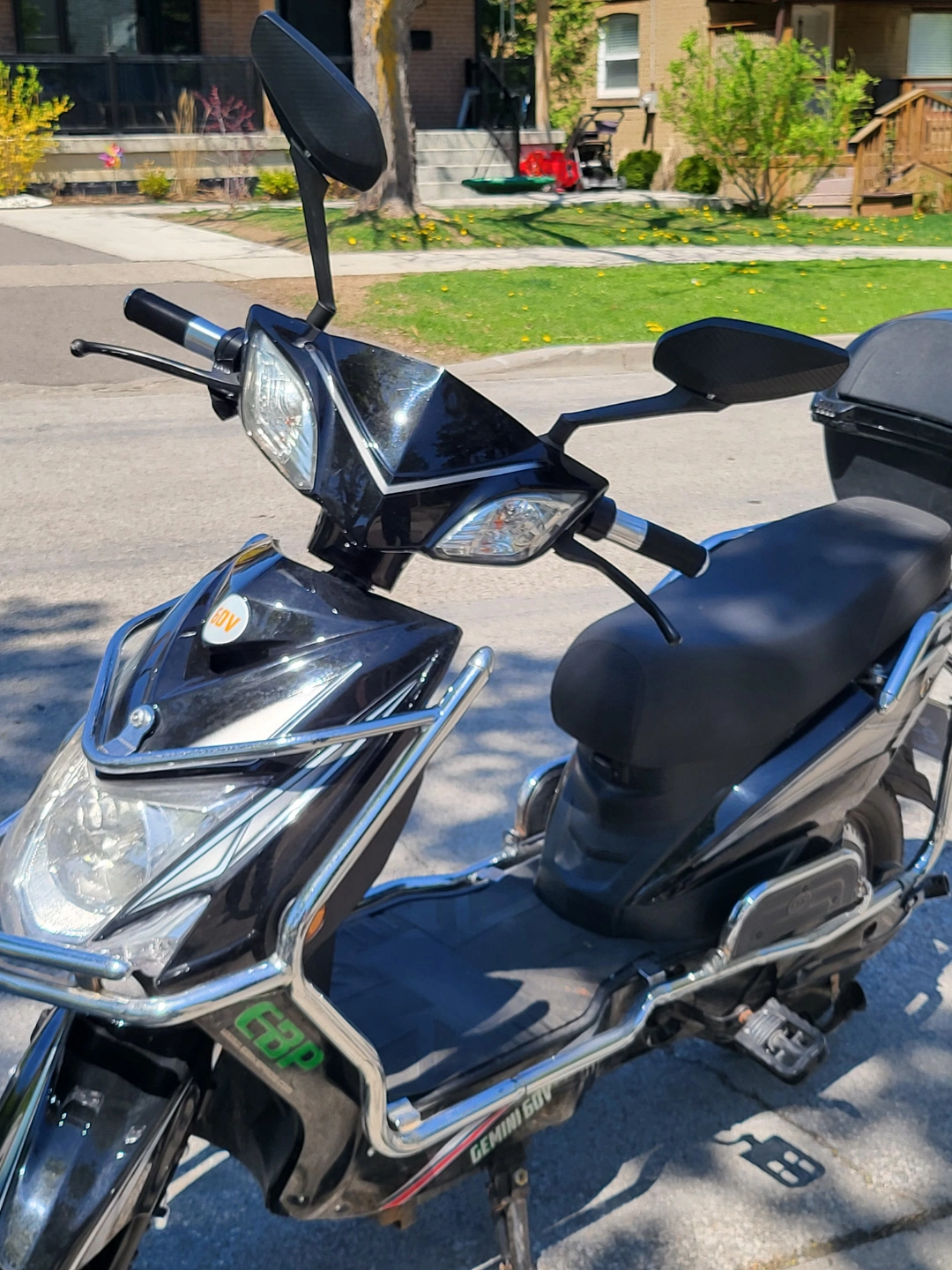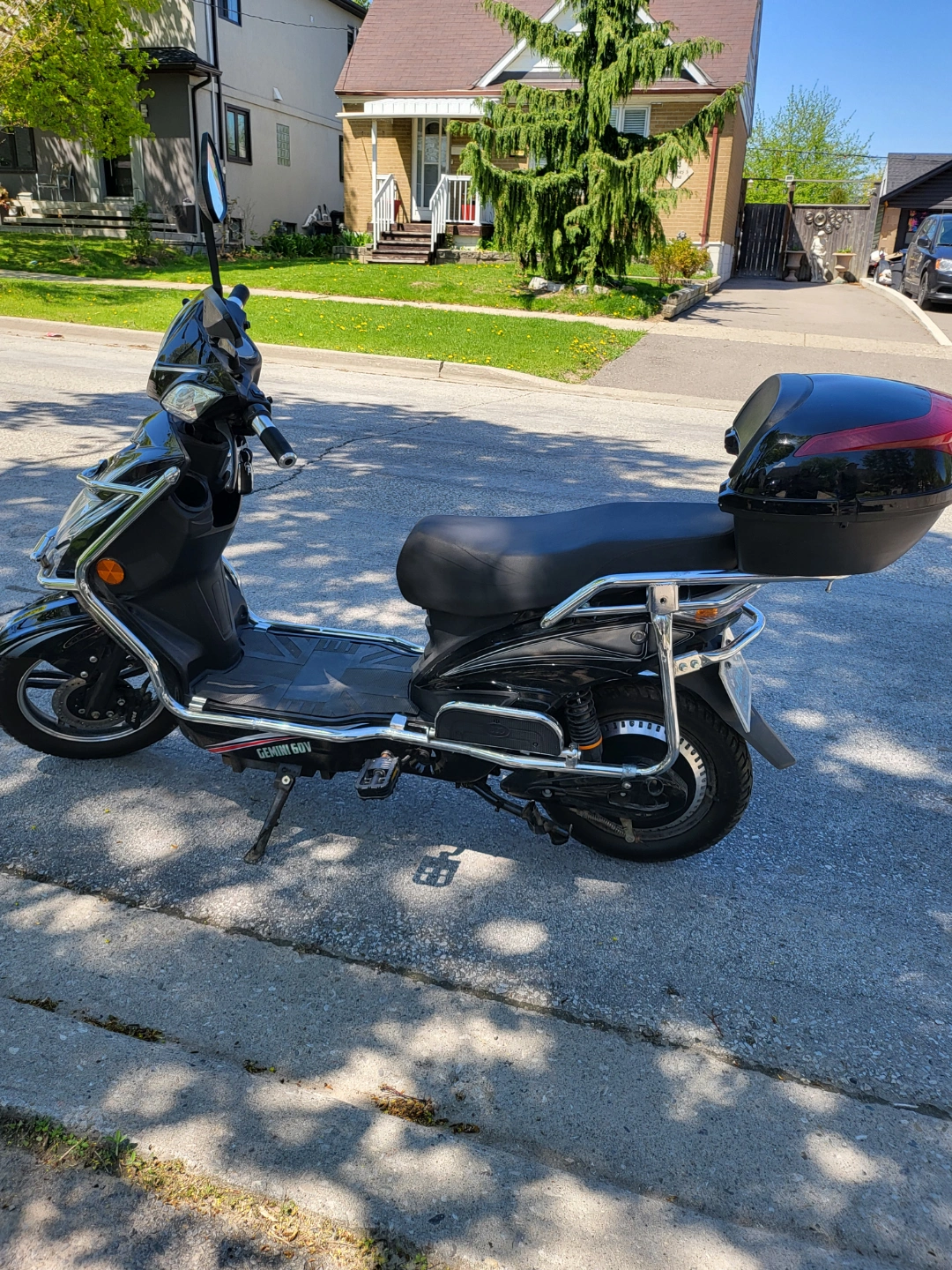 Selling my black 60V electric scooter, the casing around the high and low button is cracked bit does not effect the high and low gear buttons it just cosmetic damage. perfect for zipping around town! This scooter is in good condition and ready for a new owner. It features: