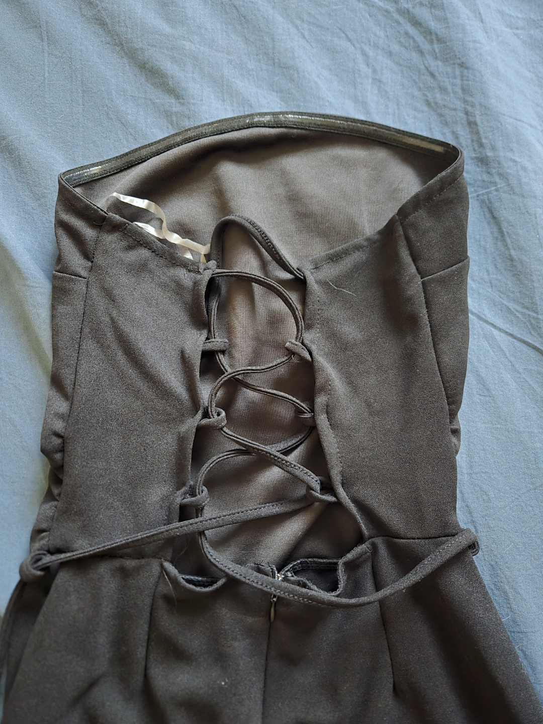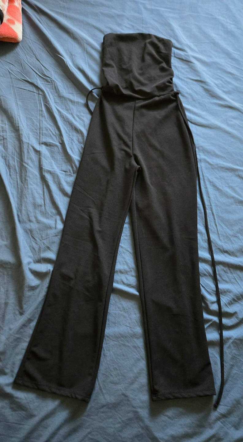 Black jumpsuit. Strapless. Lace-up back detail. Wide-leg pants. Size small. pick up Notre Dame ave and Keewatin. willing to meet downtown someday.