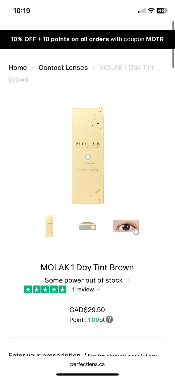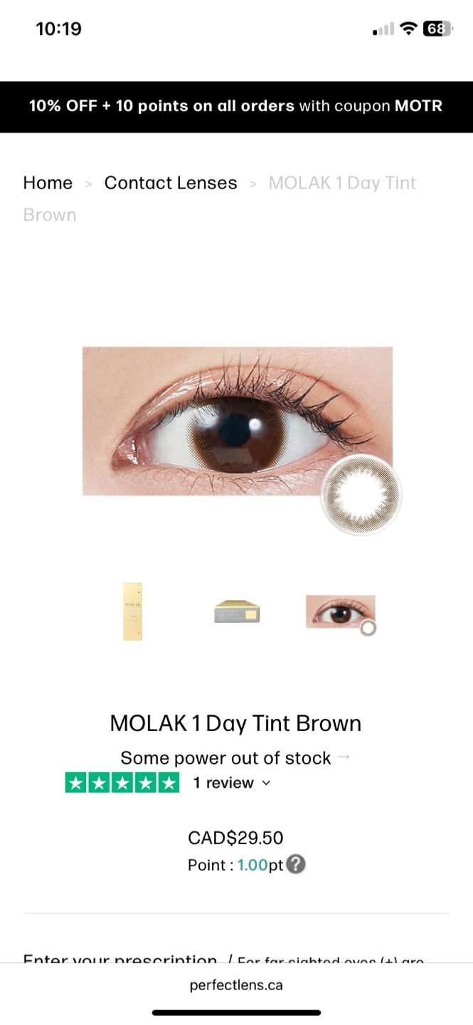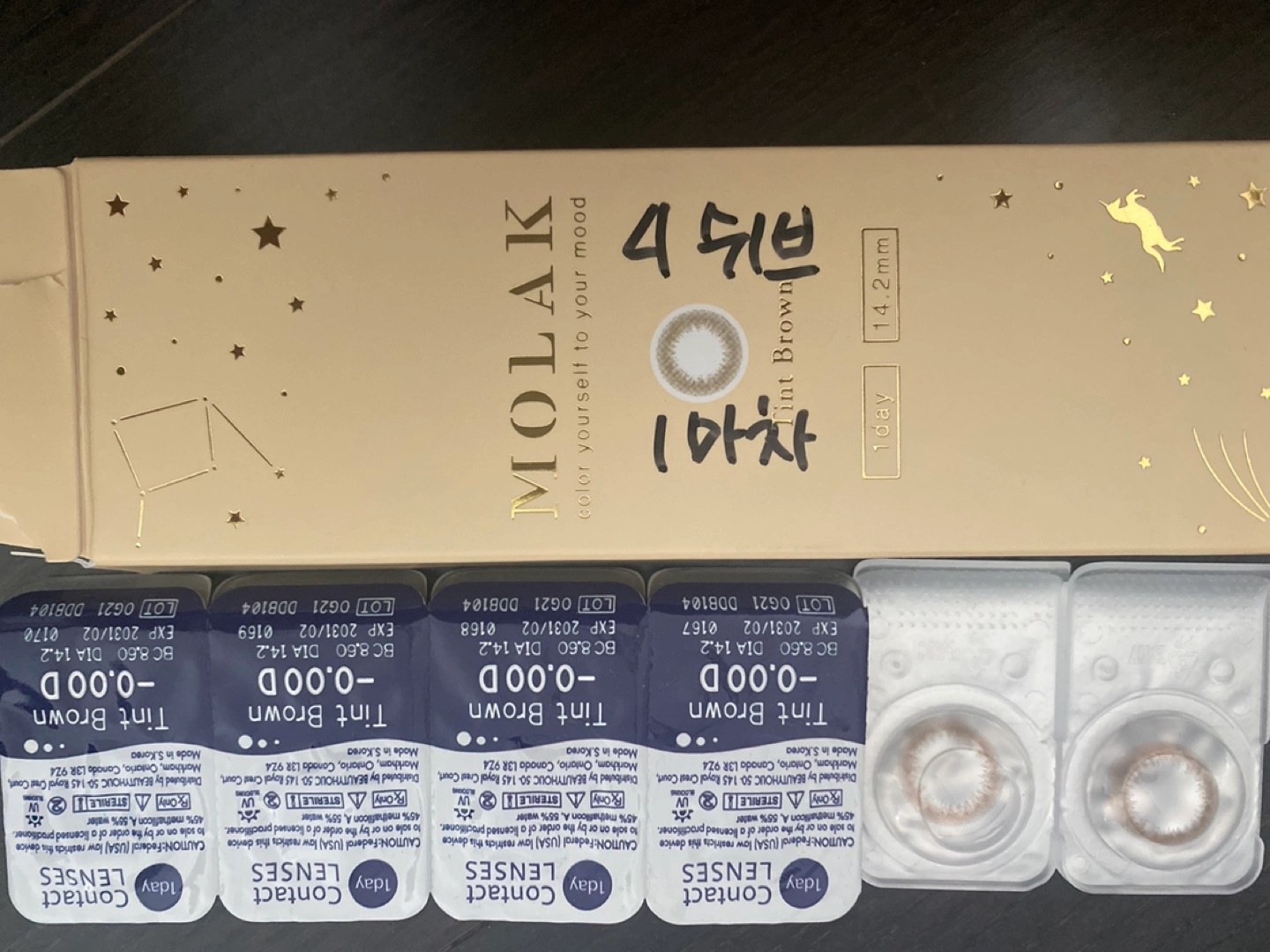MOLAK 1 Day Tint Brown Contact Lenses(opened box, 6 lenses)