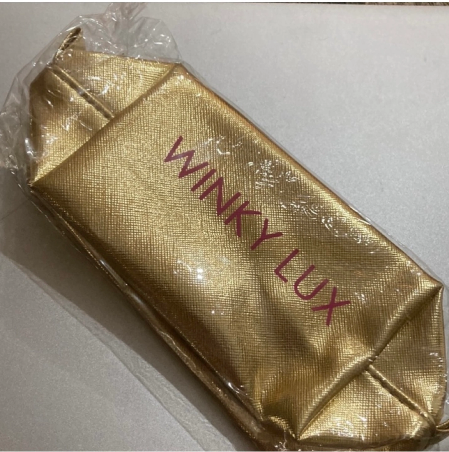 Gold cosmetic bag. Zipper closure. Great for travel.