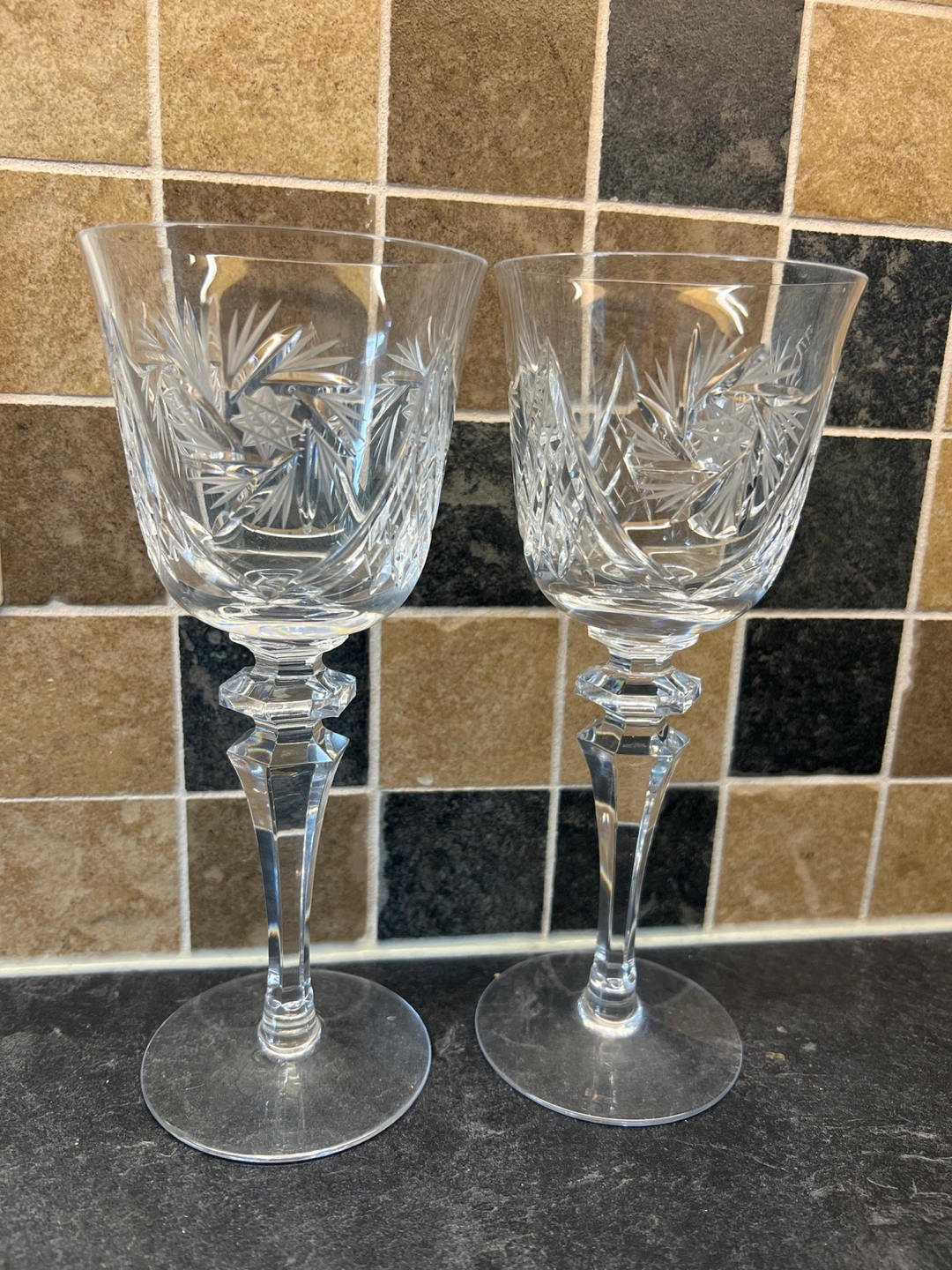 Pair of Crystal Pinwheel Wine Glasses