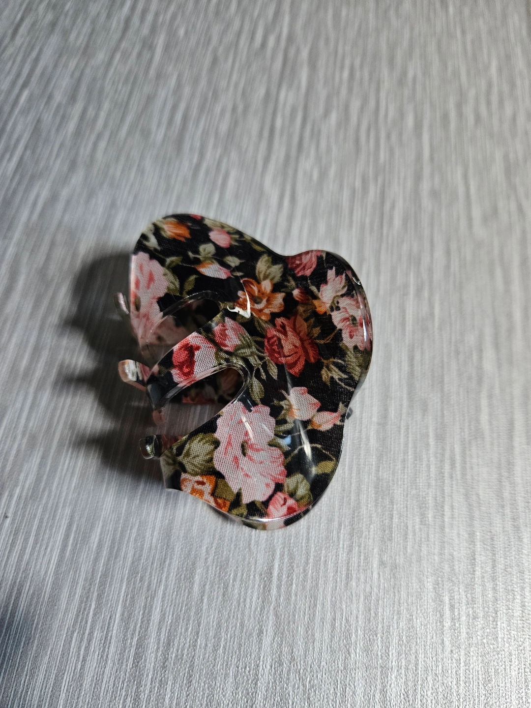 Black and pink floral print. Plastic material. Great for everyday use. Strong grip.