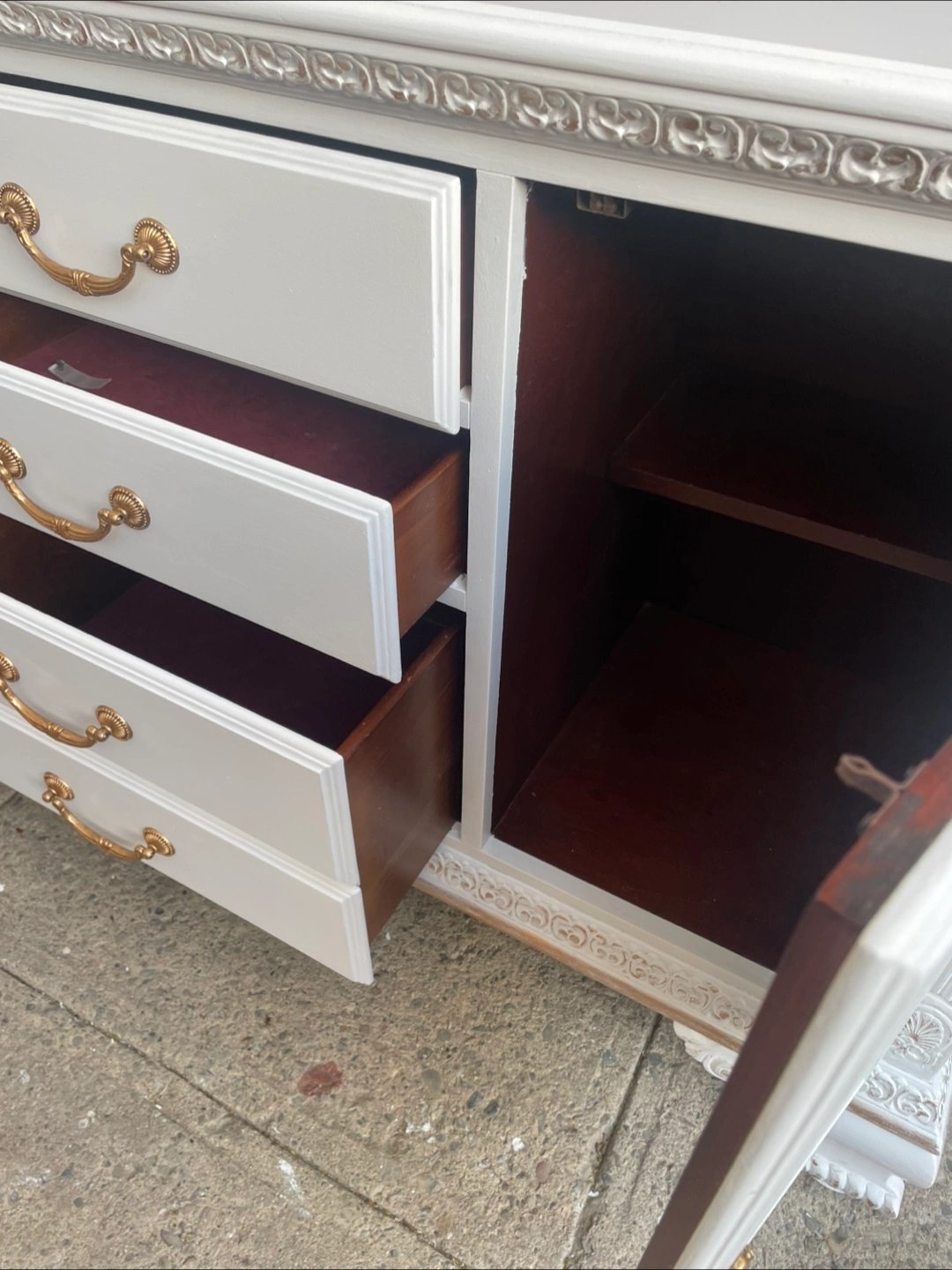 Just repainted it with white colour and gold colour hardware. It’s pretty heavy.