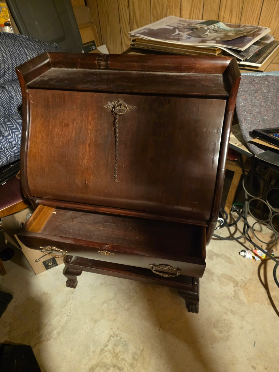 Buy & SellVintage Wooden Secretary DeskVintage Wooden Secretary Desk$130Dark brown wood secretary desk. Features a drop-down writing surface, multiple compartments, and a drawer. Shows some wear.WHERE TO MEETCheck LocationView MapSELLERMikeJohn Bowser Crescent736 reviews1 chats·0 favorites·35 viewsSEND CHAT TO SELLERHi Mike! I’m interested in your listing.Hi Mike! I’m interested in your listing.Get the Karrot app to chatSign In to chat