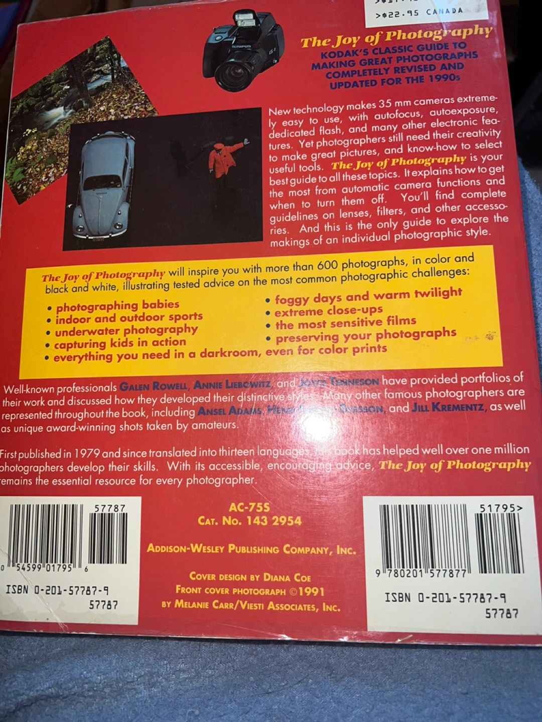 Kodak's classic guide to making great photographs. Completely revised and updated for the 1990s. Features information on automated 35 mm cameras, choosing equipment, and developing personal style. Includes many photographs in colour and black and white.