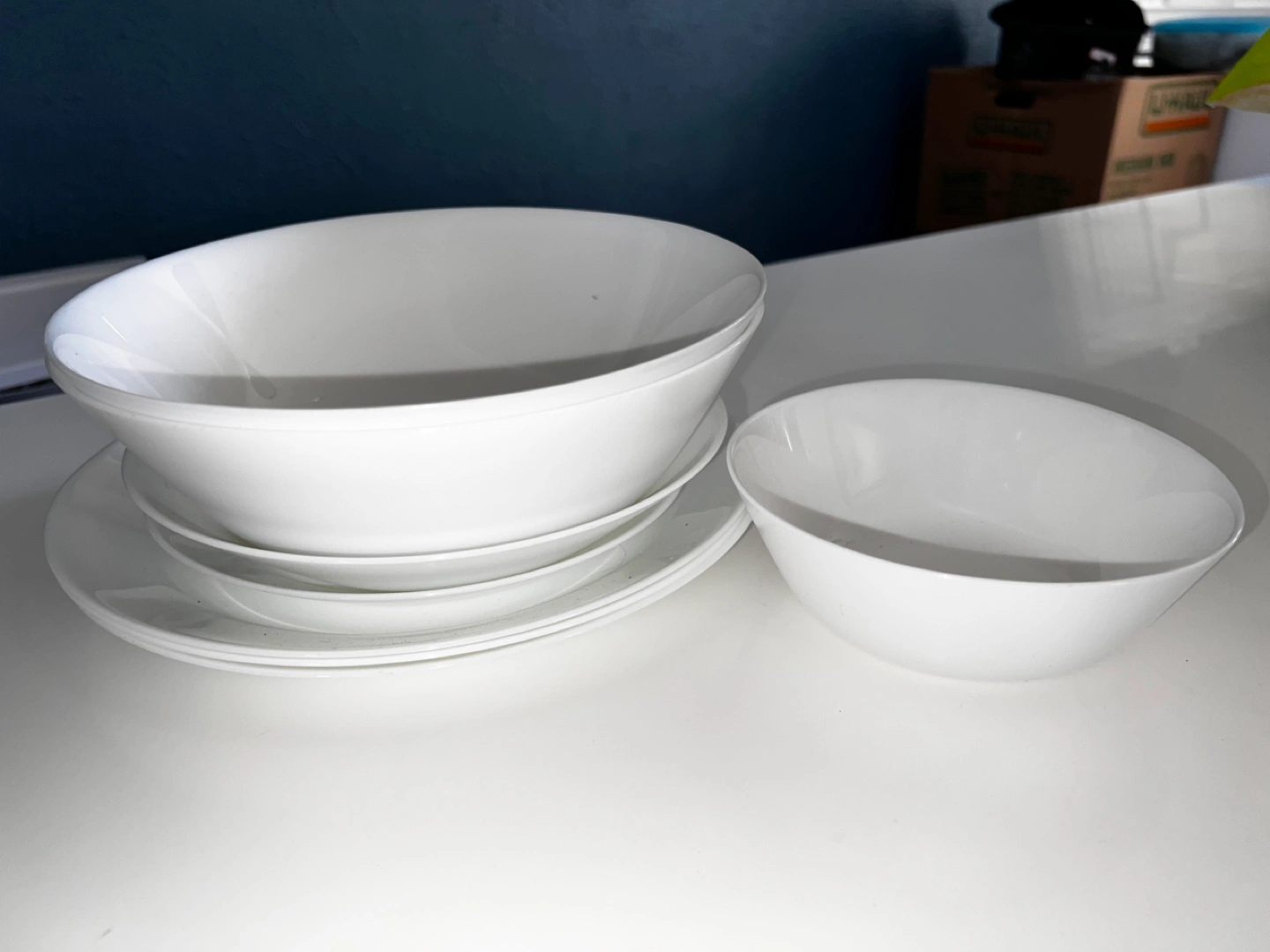 Set of white bowls and plates. Stack of plates and two bowls. In very good condition still! All items are dishwasher friendlyđź’§